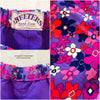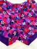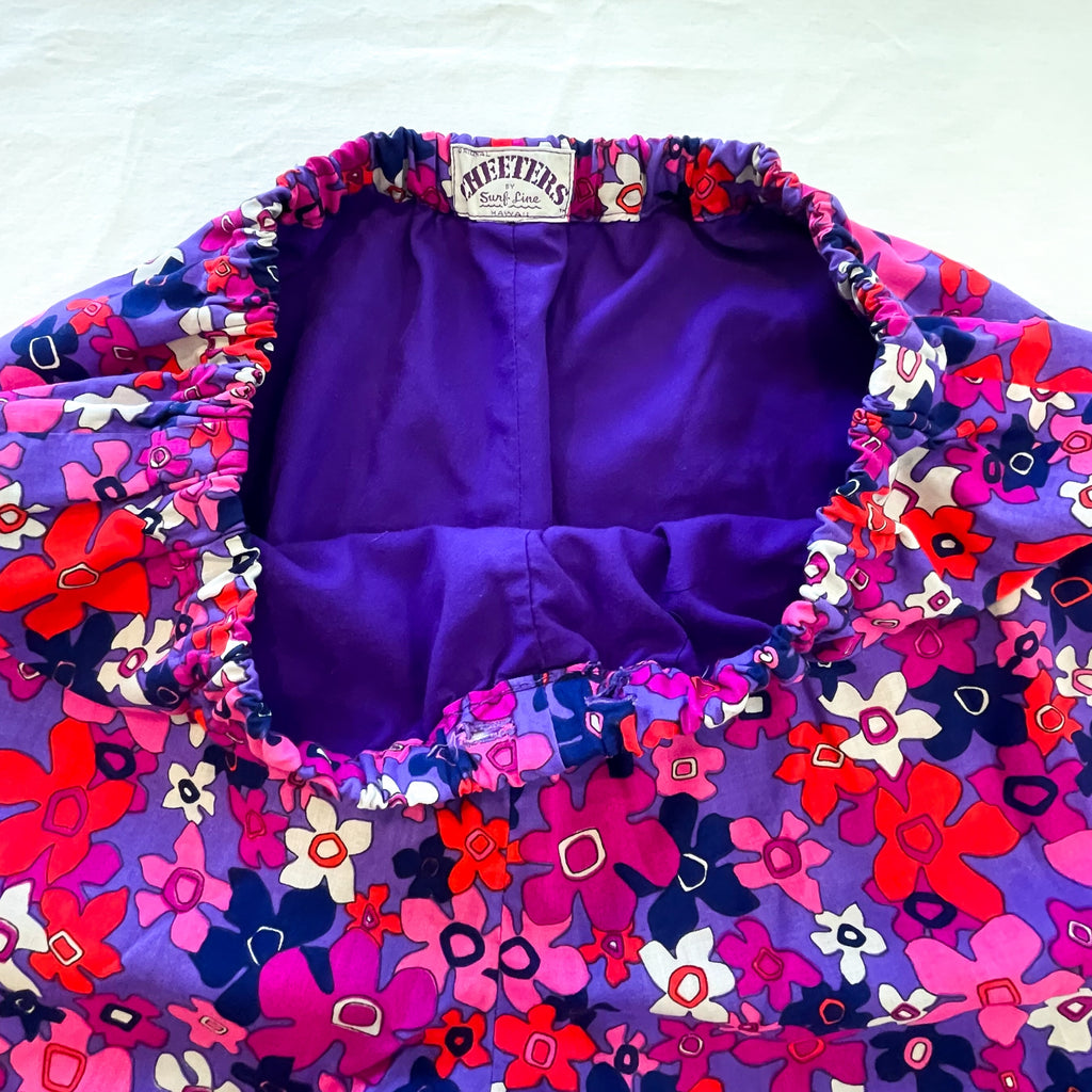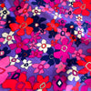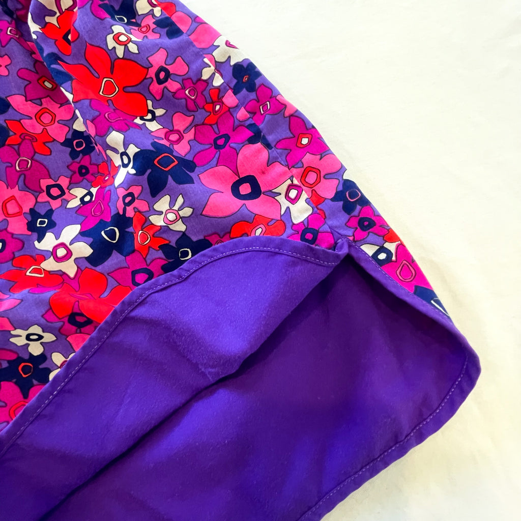 Purple, pink, orange, white flower power print.