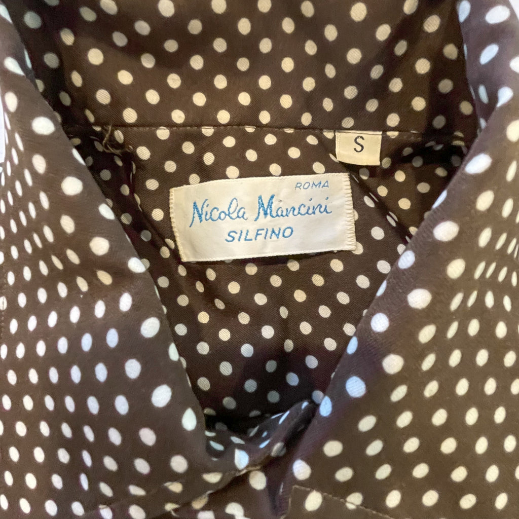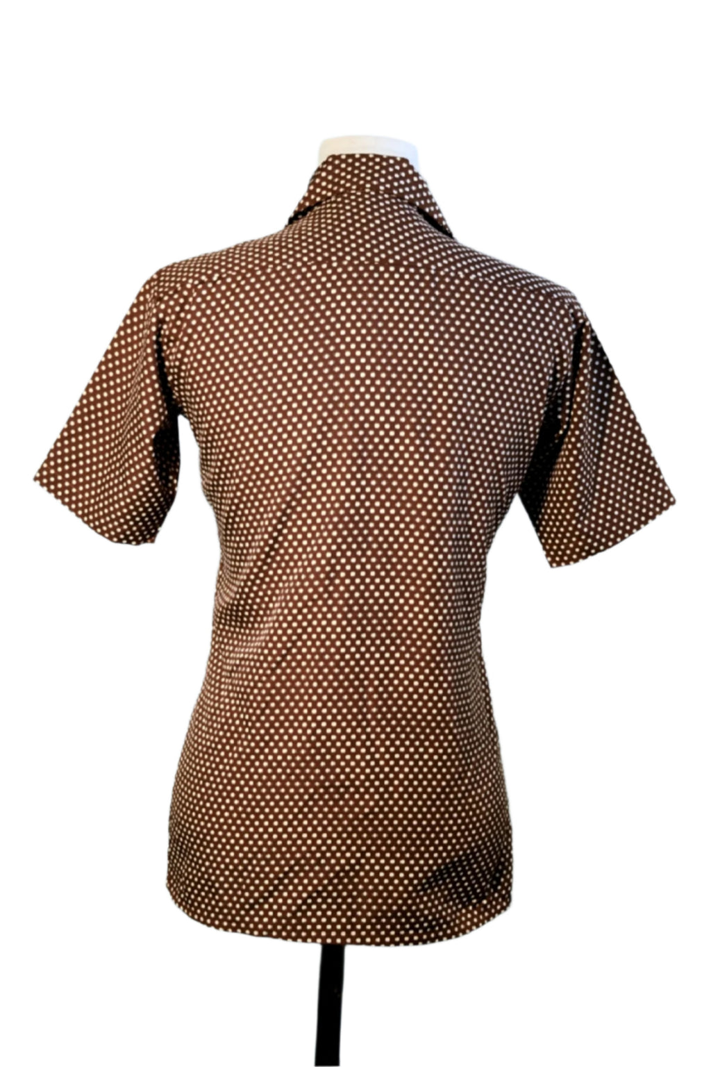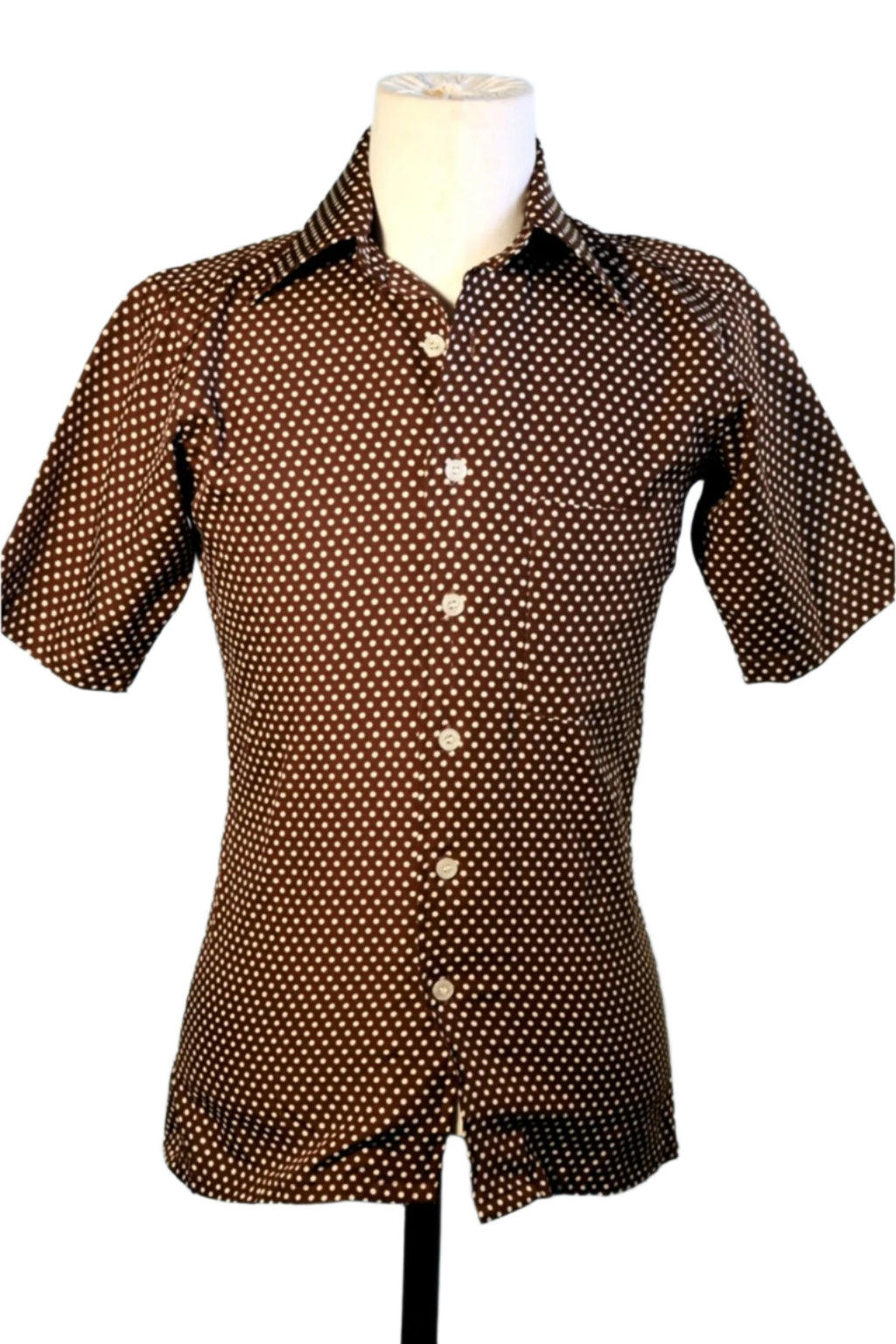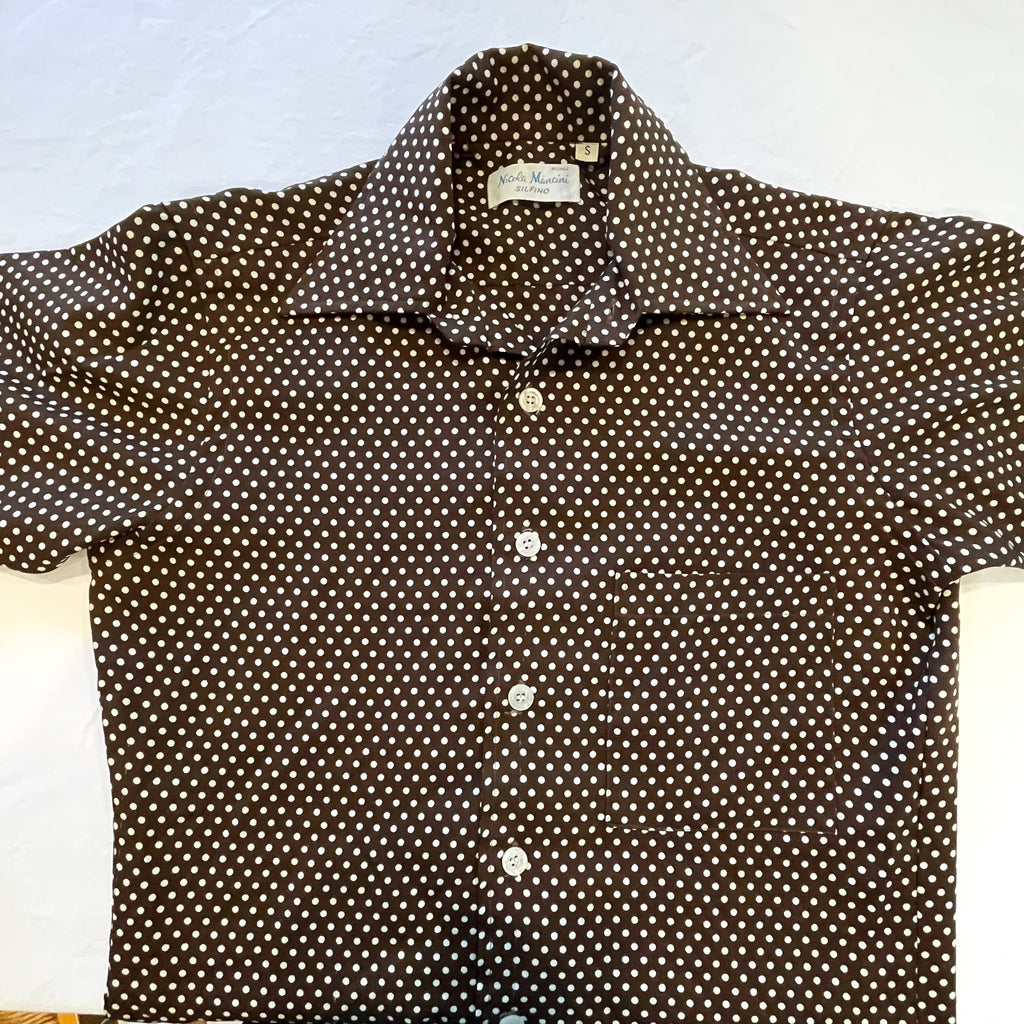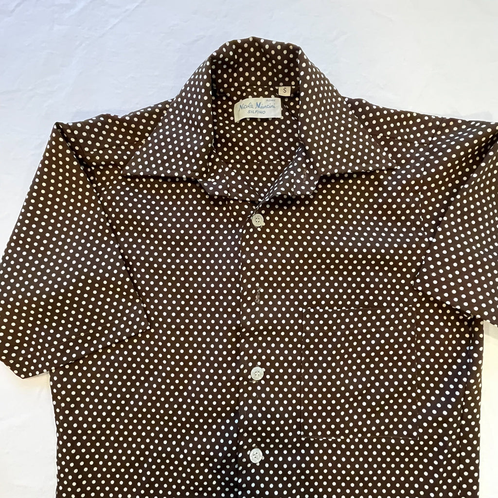 Short sleeve dark brown Polyester polka dot slim fit shirt.