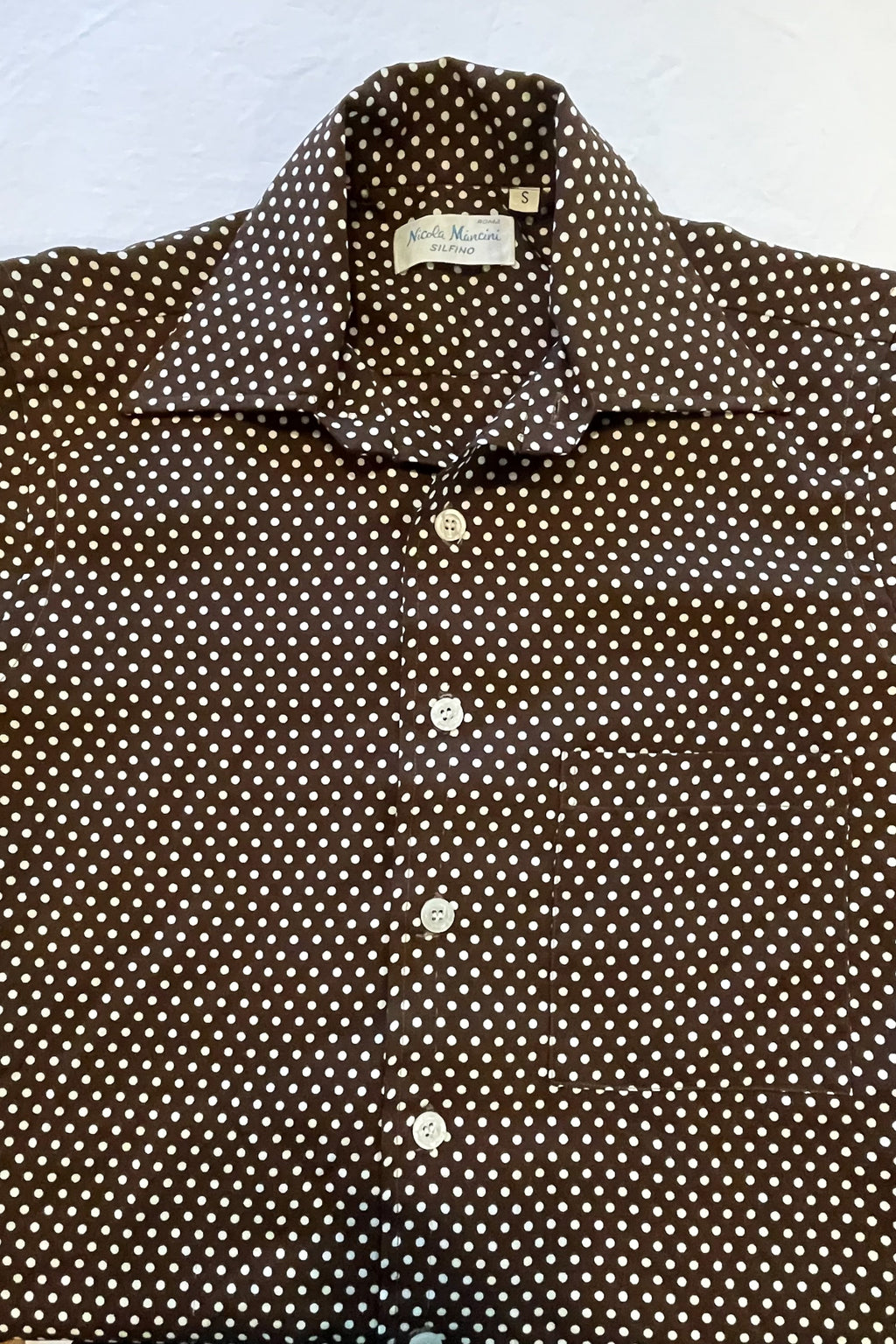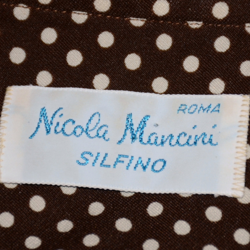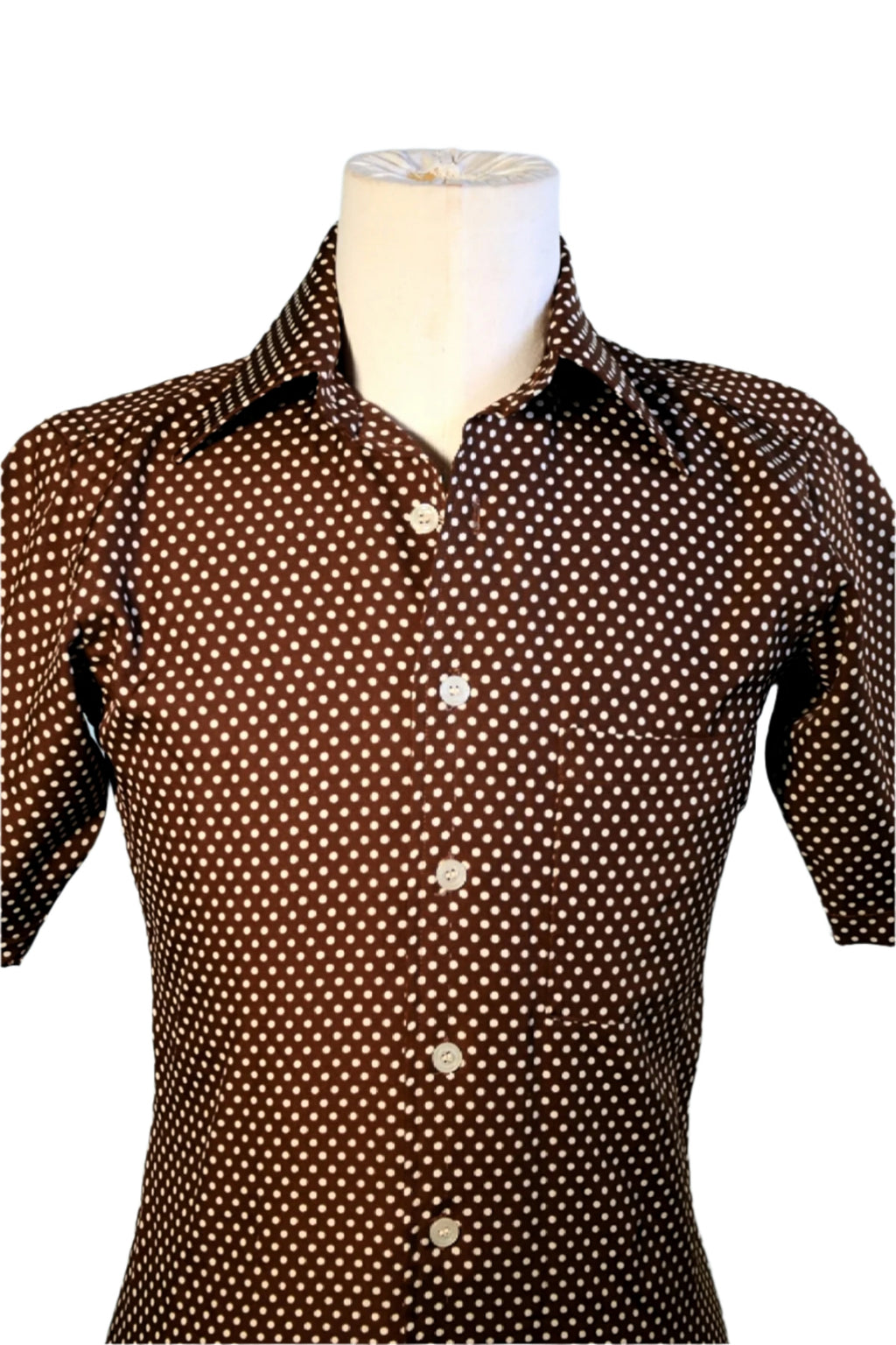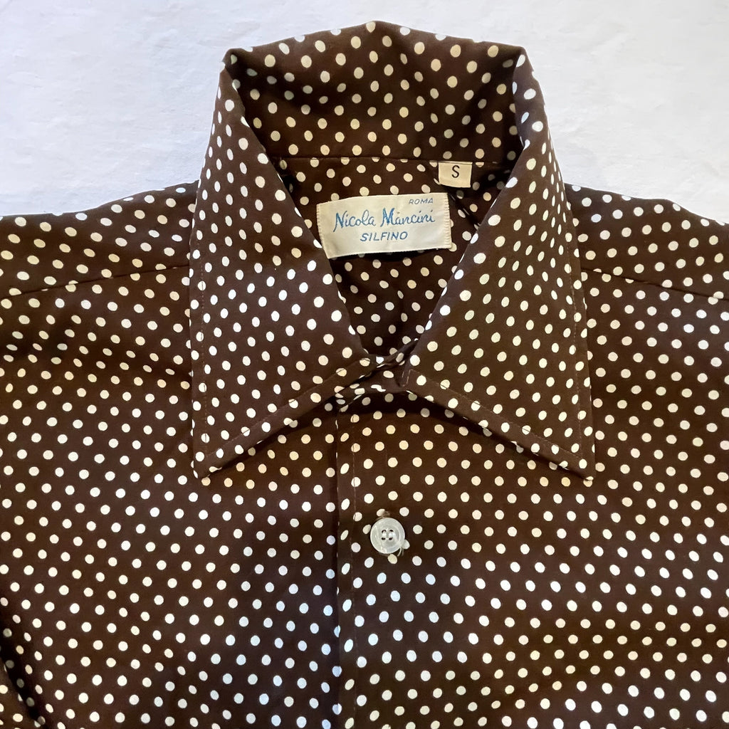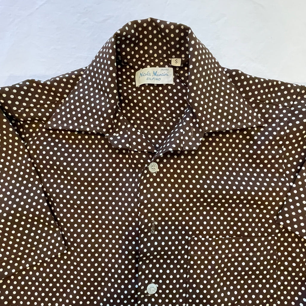Short sleeve dark brown Polyester polka dot slim fit shirt.