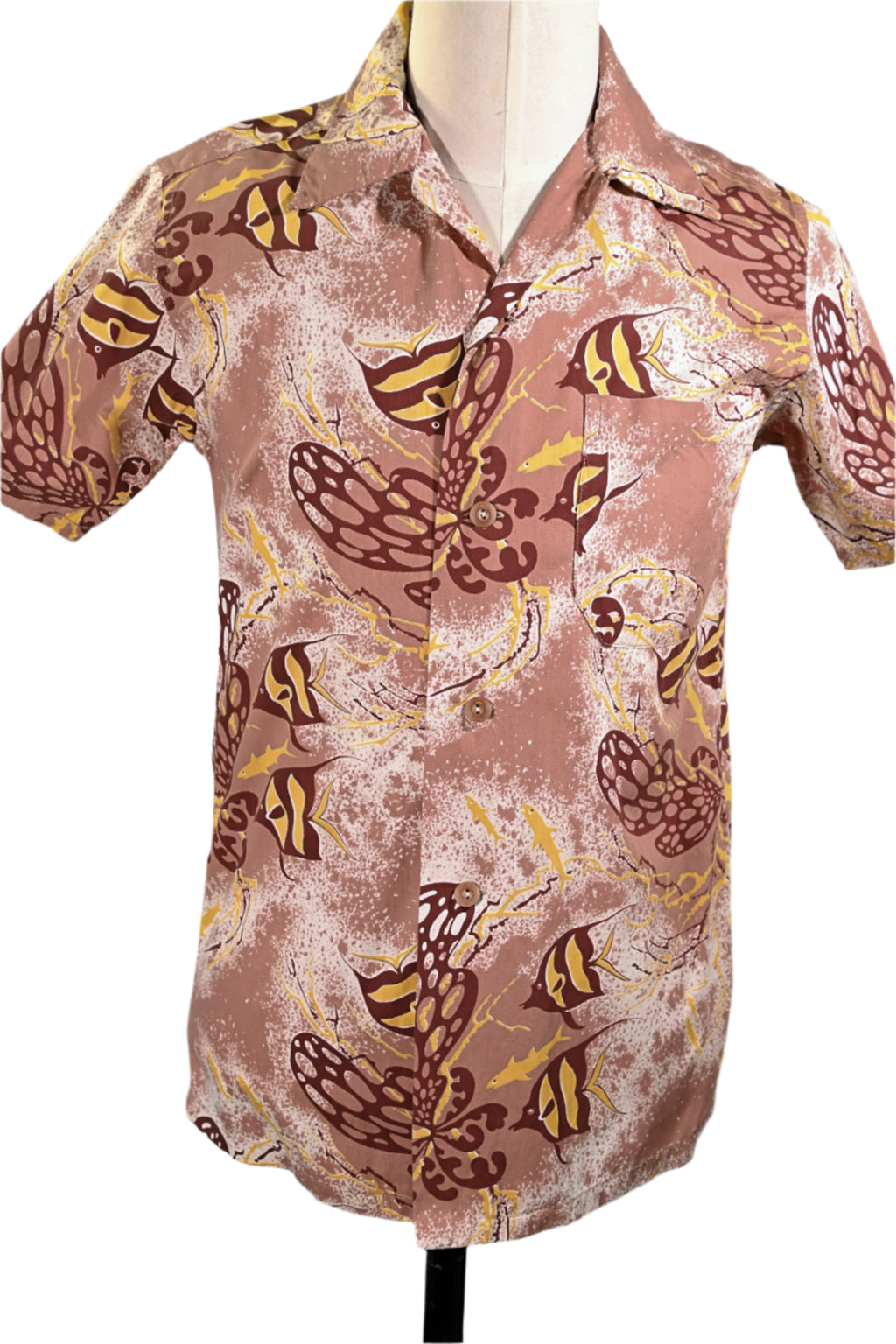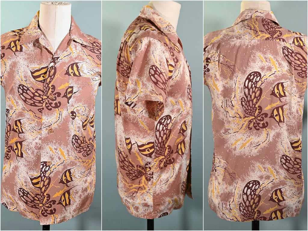 Stunning vintage 50s underwater fish print Hawaiian Aloha shirt.