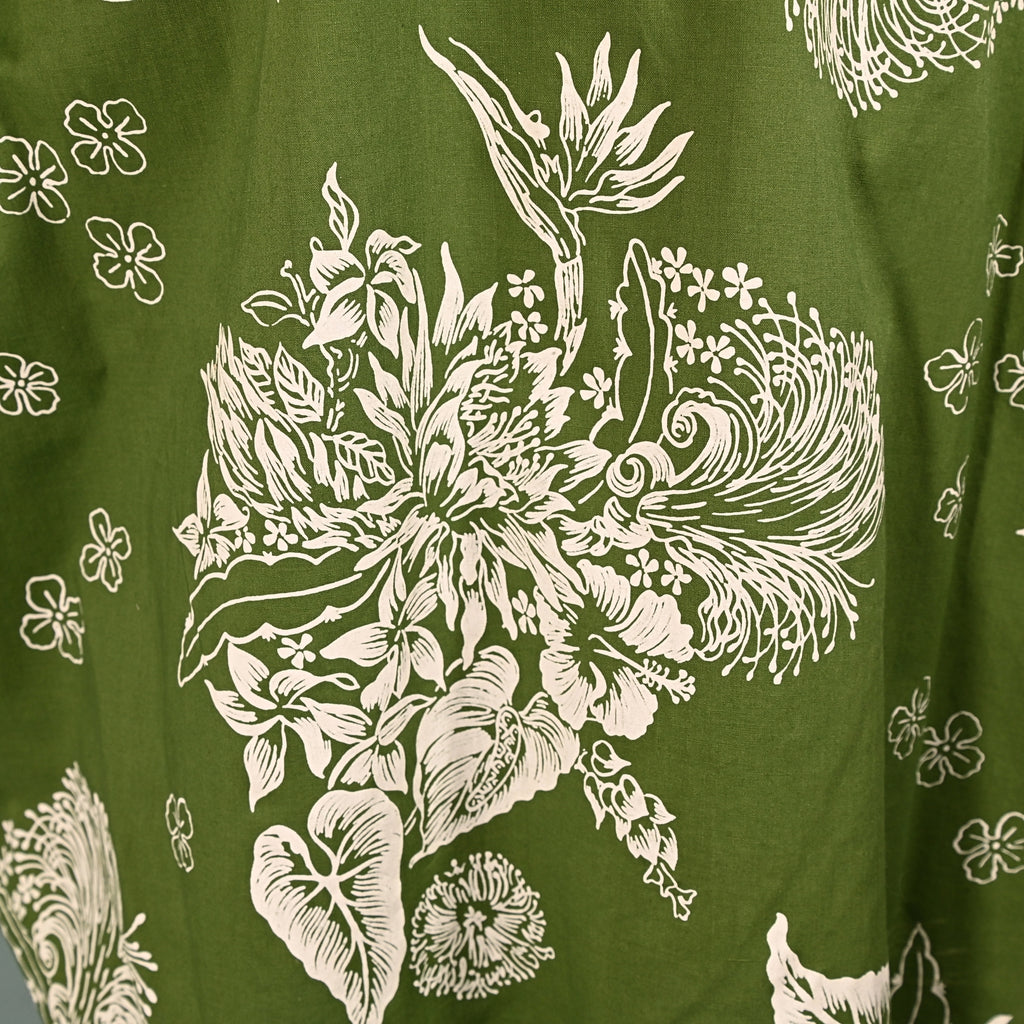 Printed with hibiscus and bird of paradise flowers.