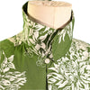 Loop collar, patch pockets, metal buttons up the front.