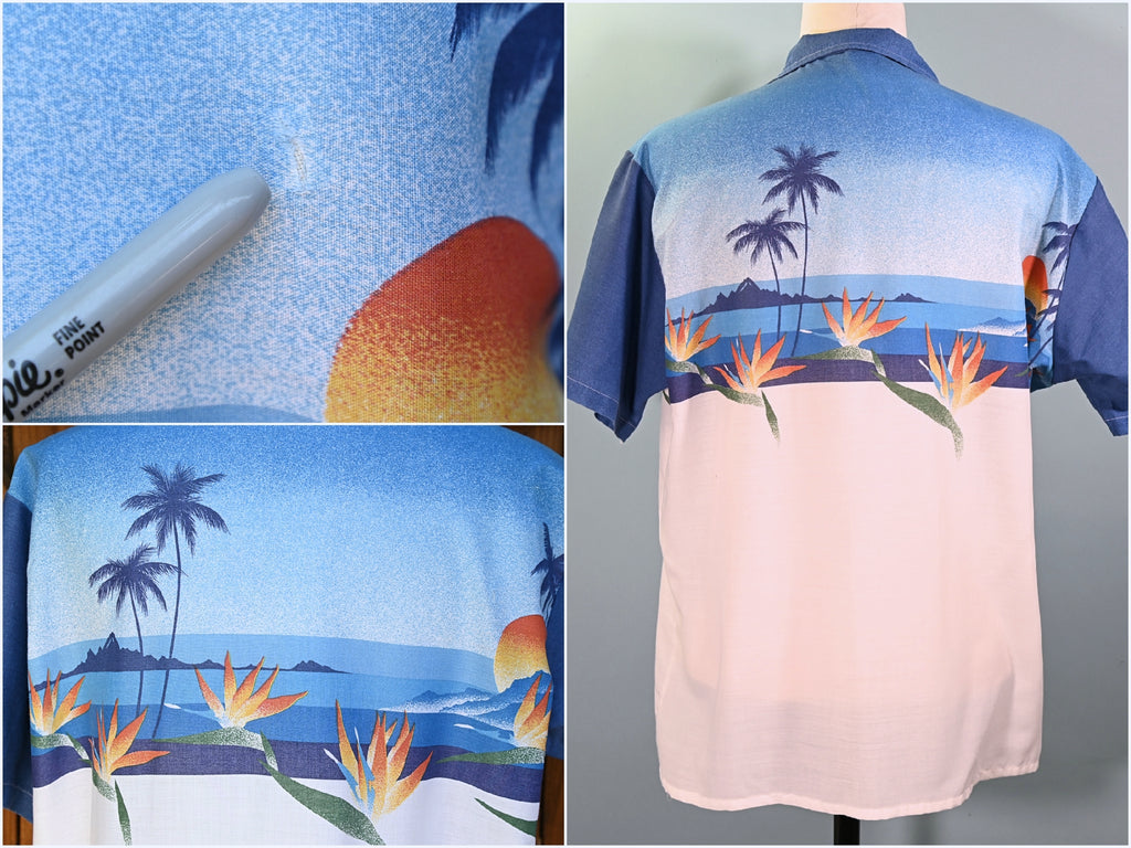 70s Aloha shirt with great graphics.