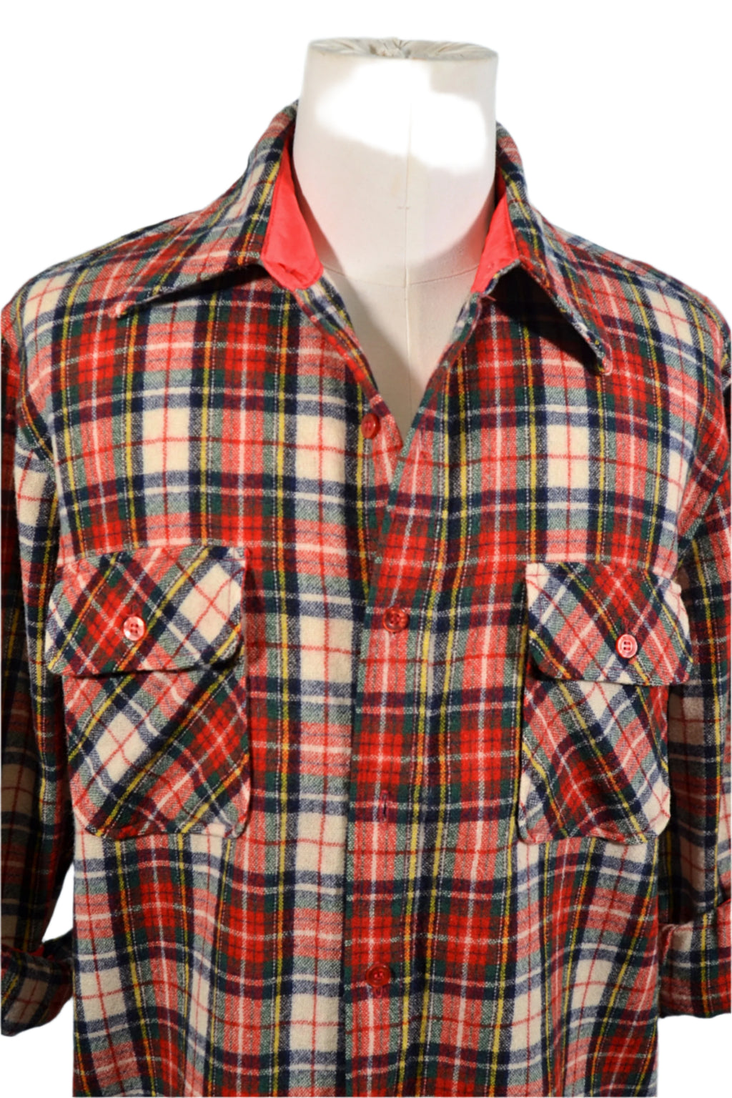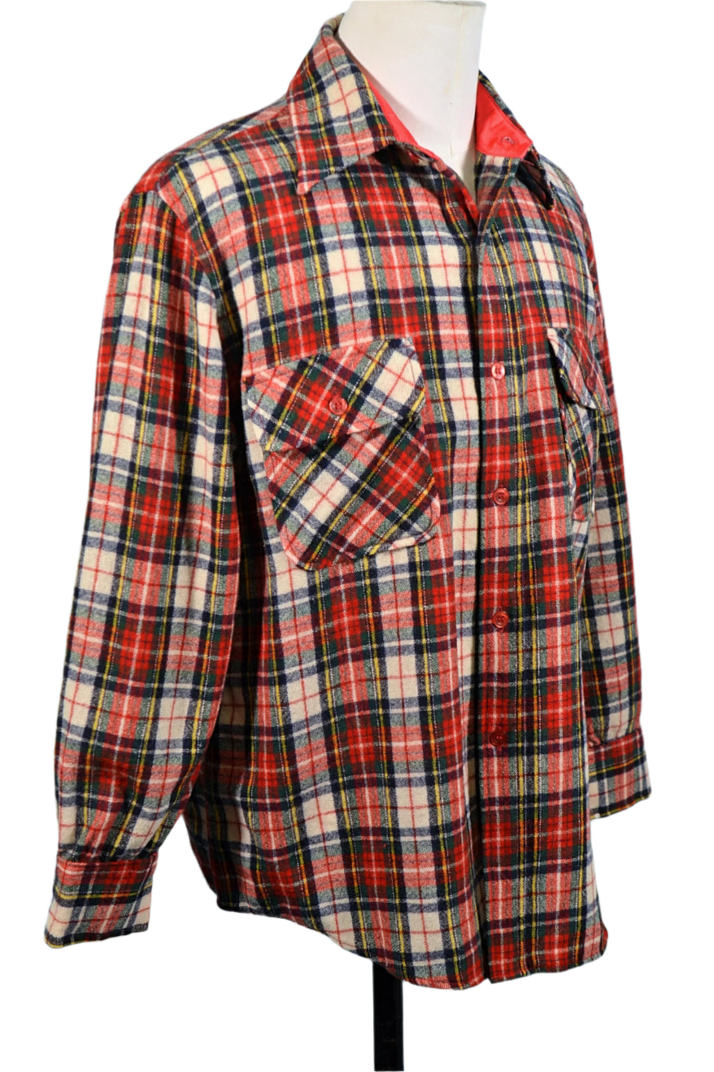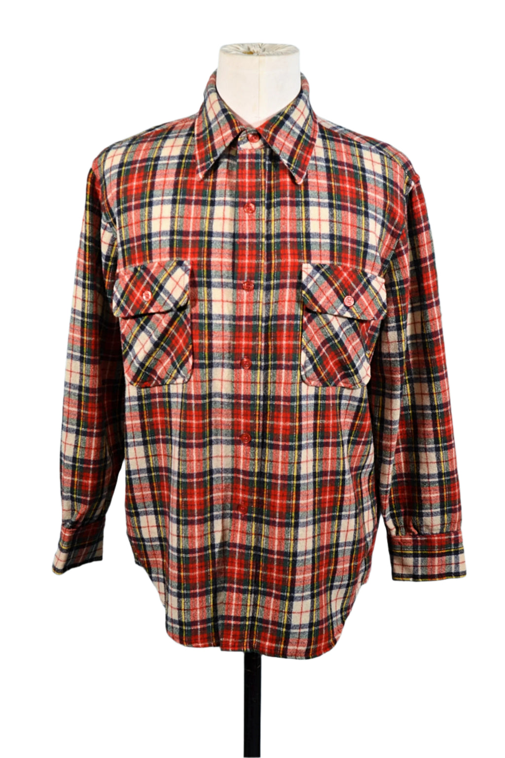 JC Pennys Vintage 60s/70s Wool Tartan Plaid Shirt, Buttoned Pocket Board Shirt L