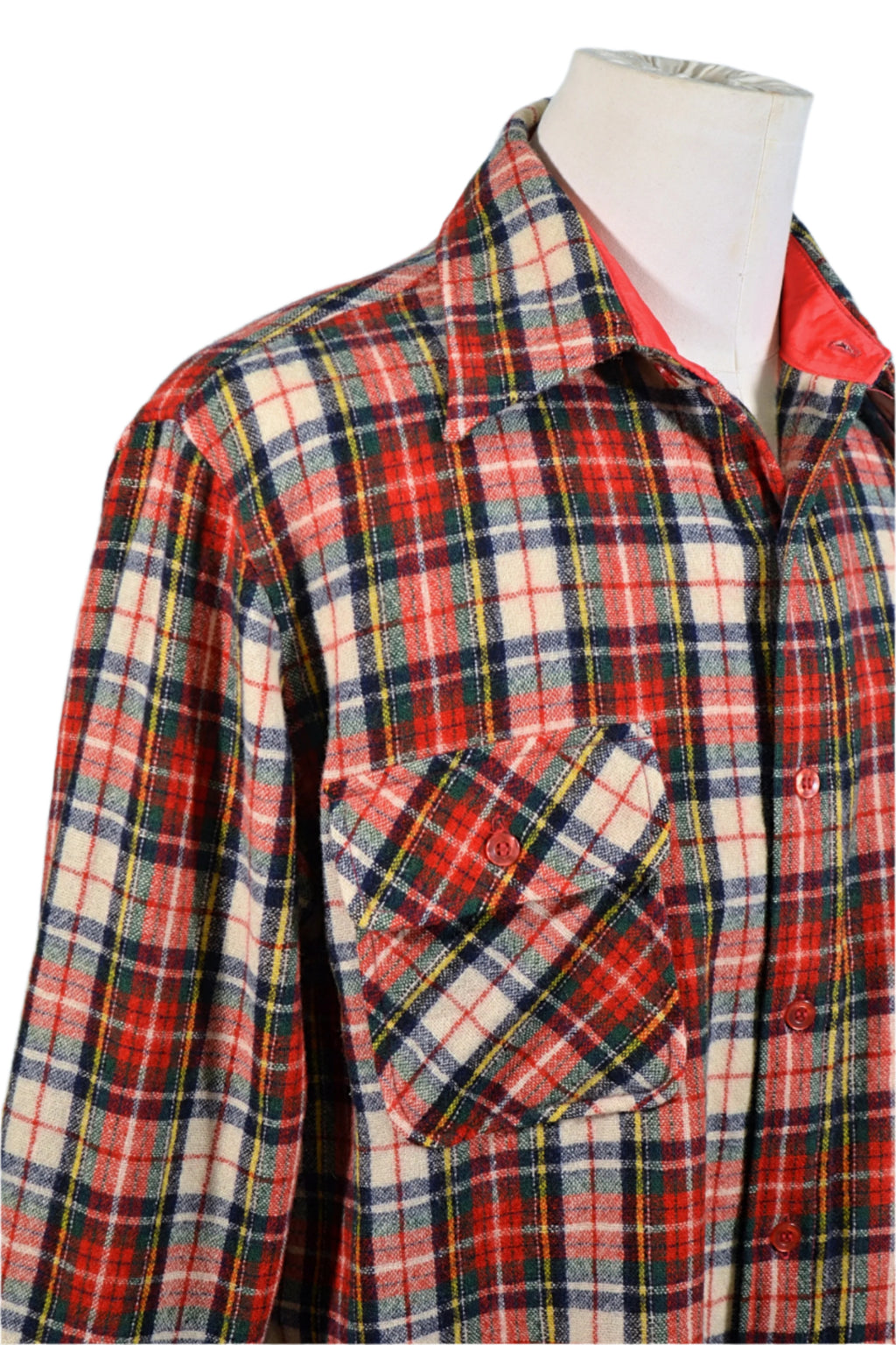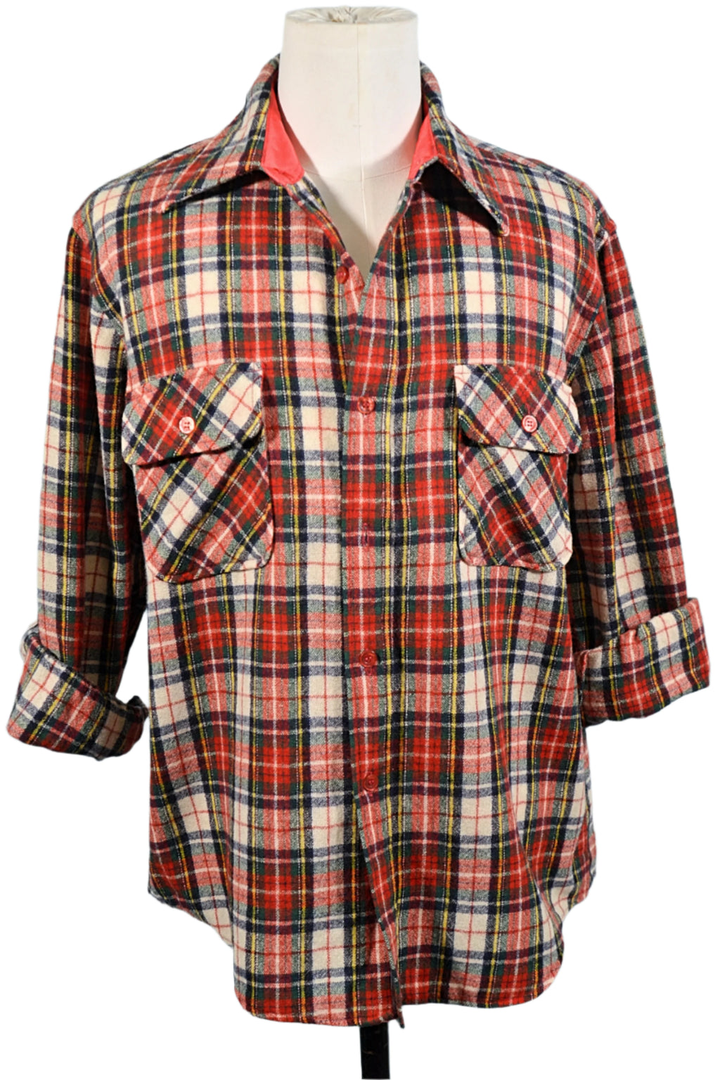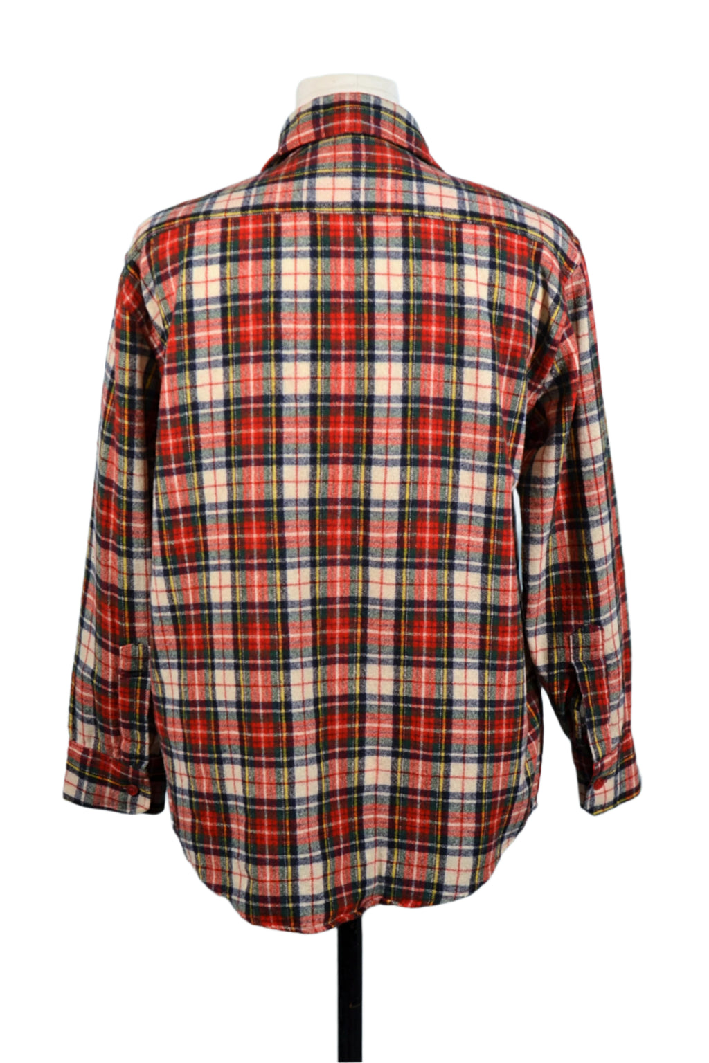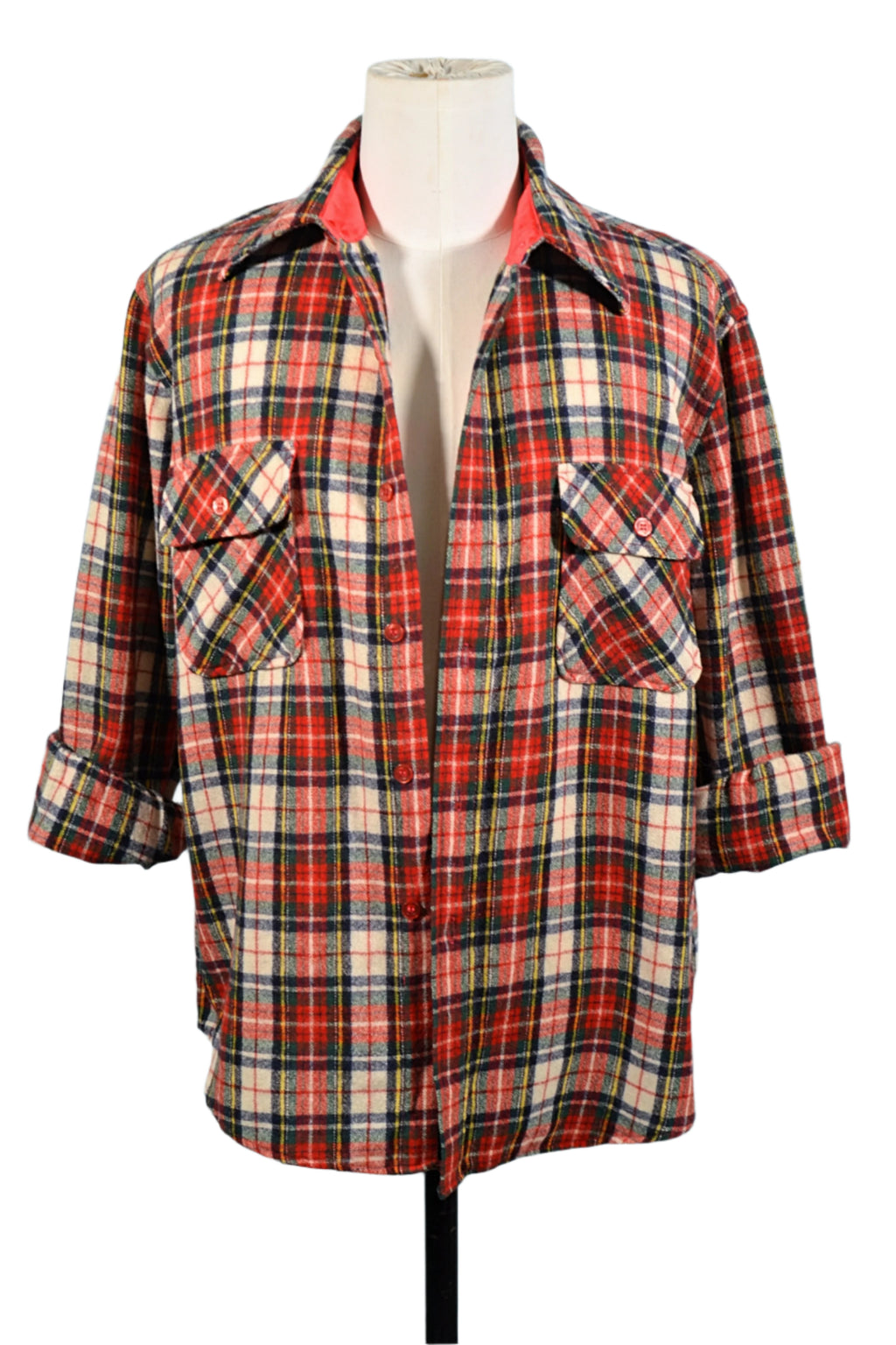 JC Pennys Vintage 60s/70s Wool Tartan Plaid Shirt, Buttoned Pocket Board Shirt L