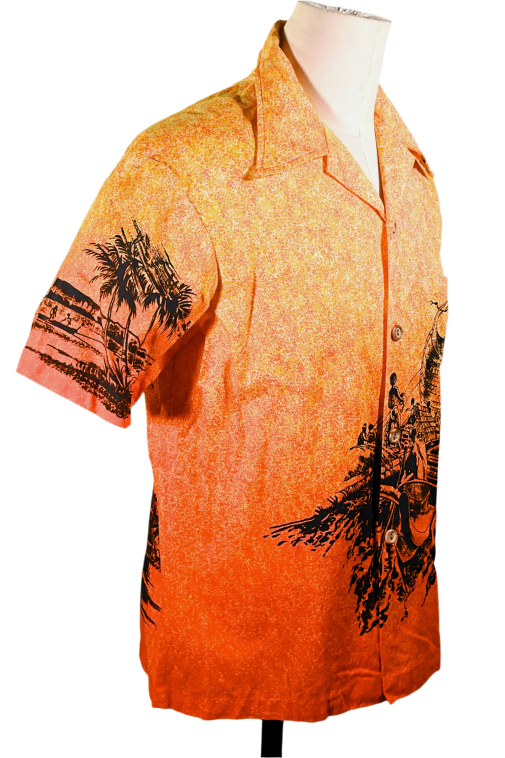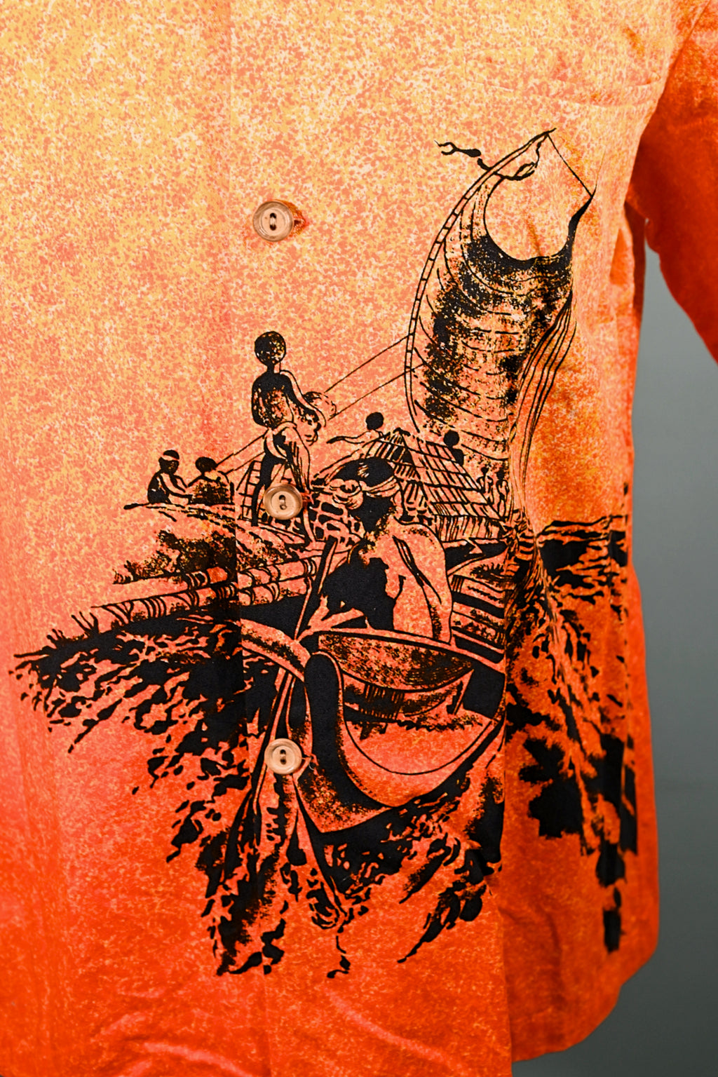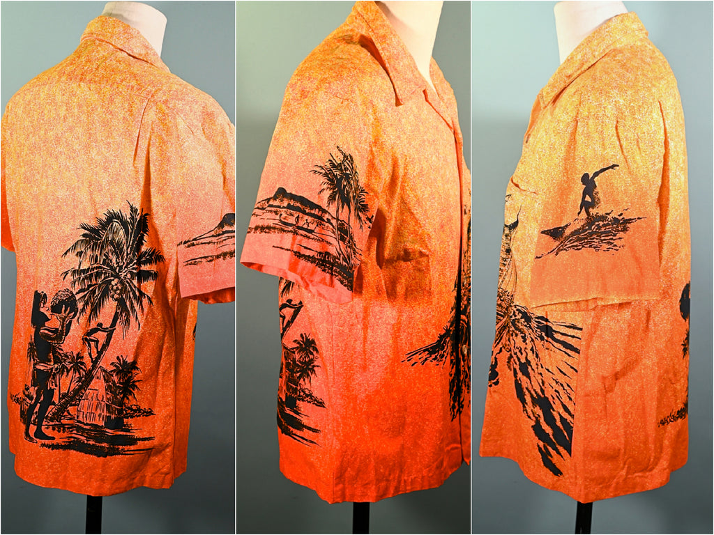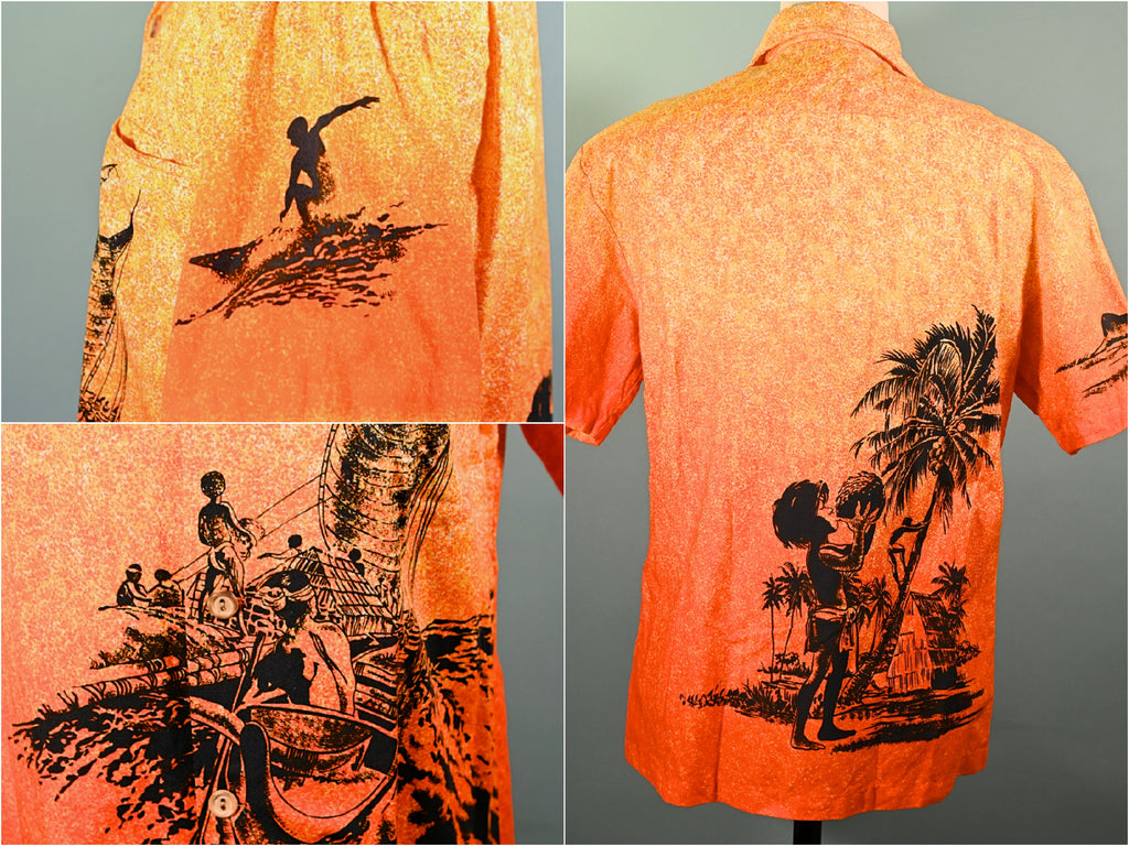 Very rare 1960s bright bold shirt with black silhouette prints.