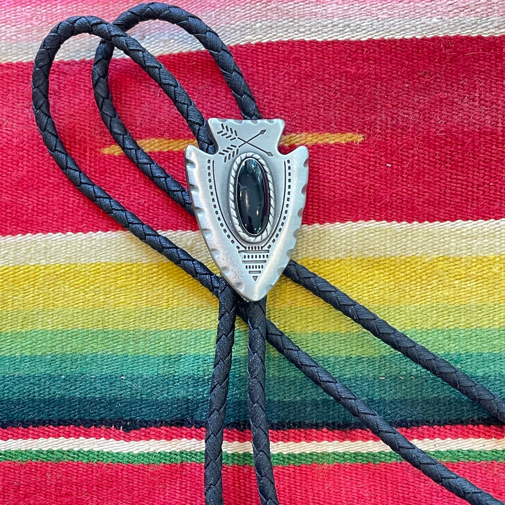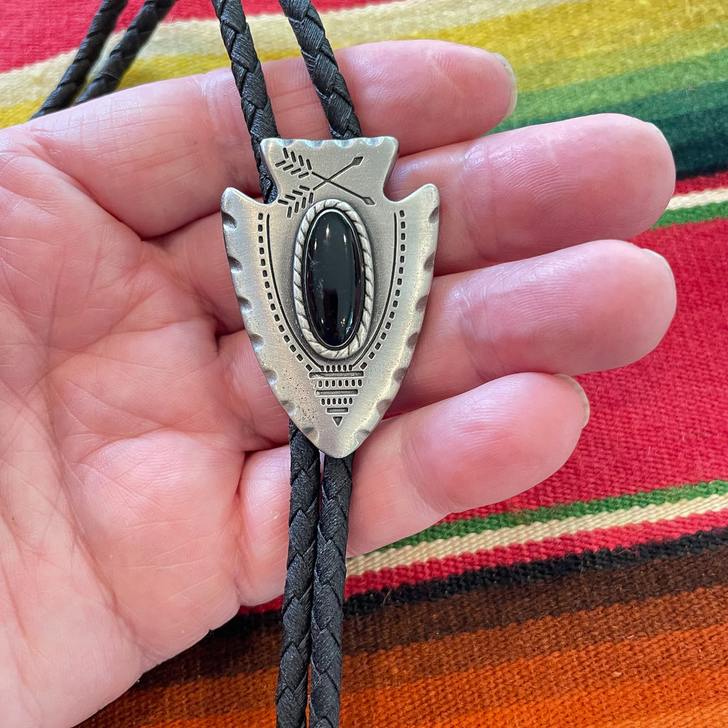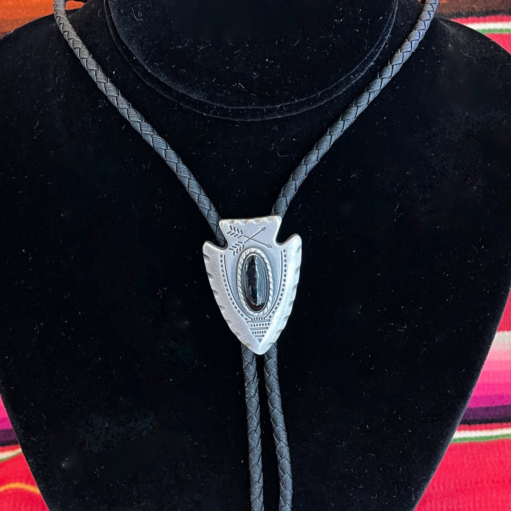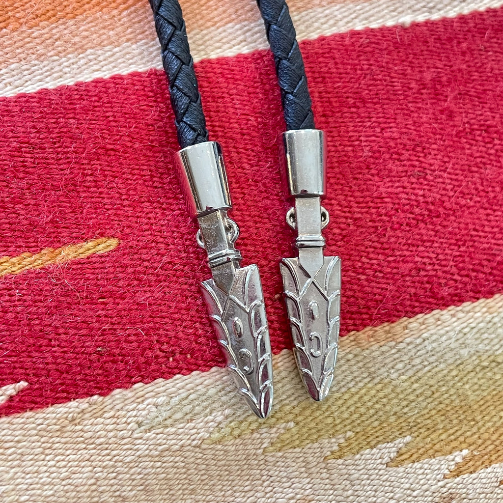 Vintage silver tone pewter finish arrowhead bolo tie.