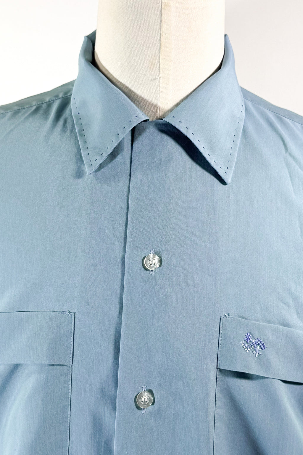 Hand stitching on the tab collar.