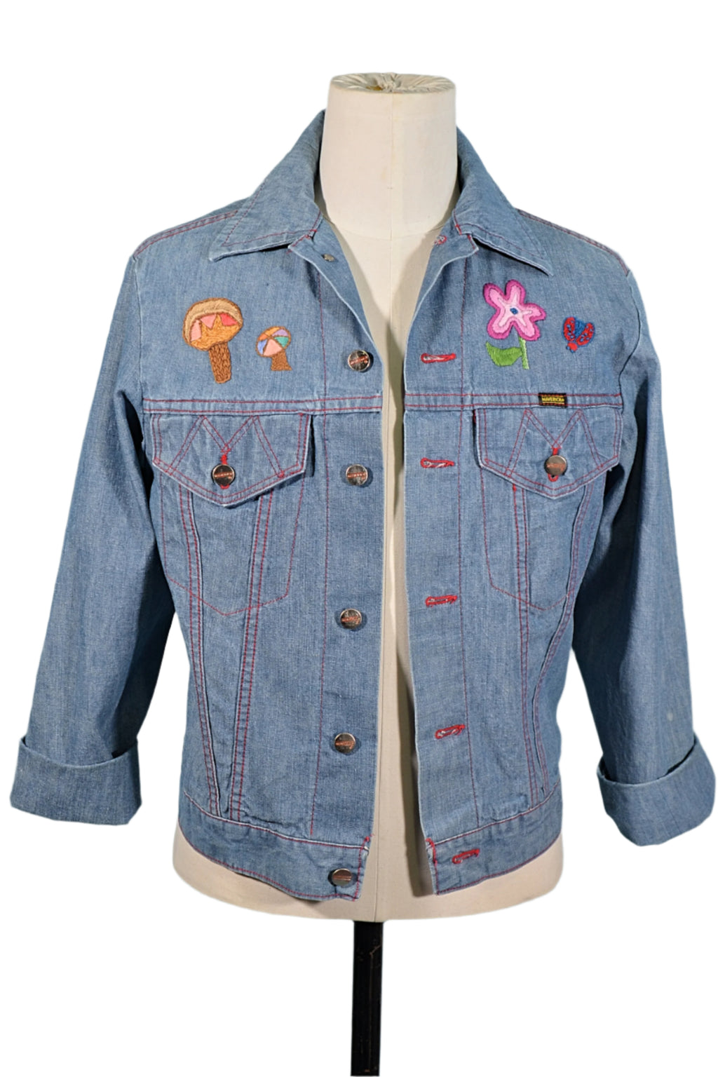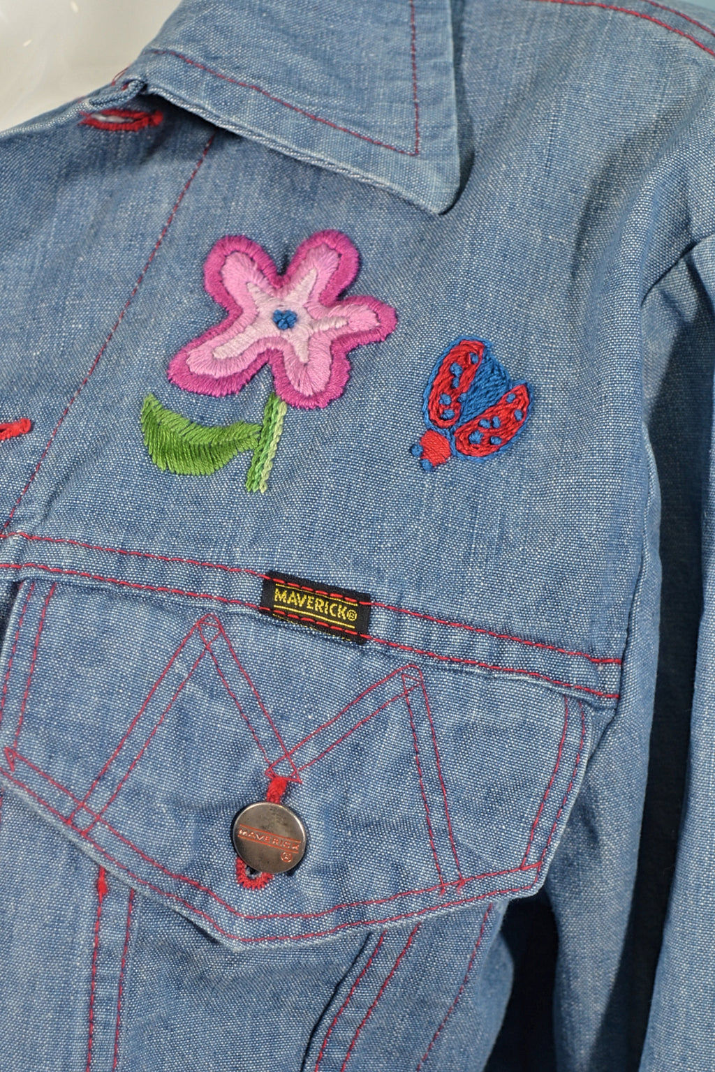 Vintage 60s/70s Embroidered Denim Jacket, OOAK, Maverick 38