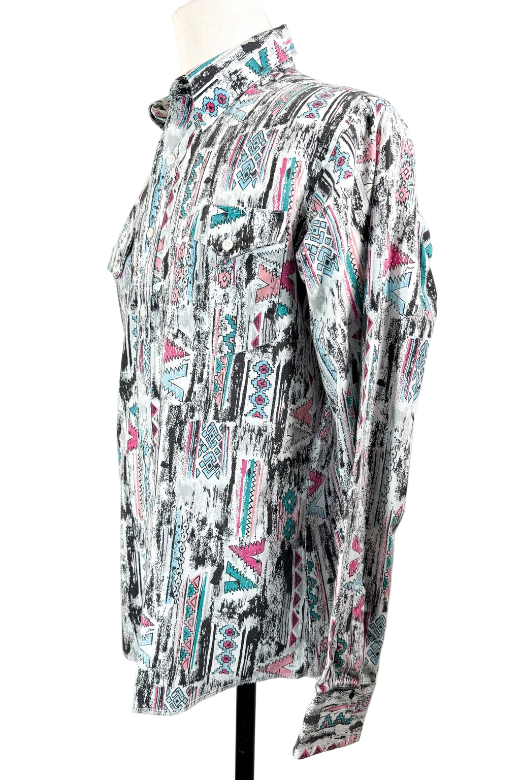 Vintage 80s novelty southwestern print shirt with button pockets.