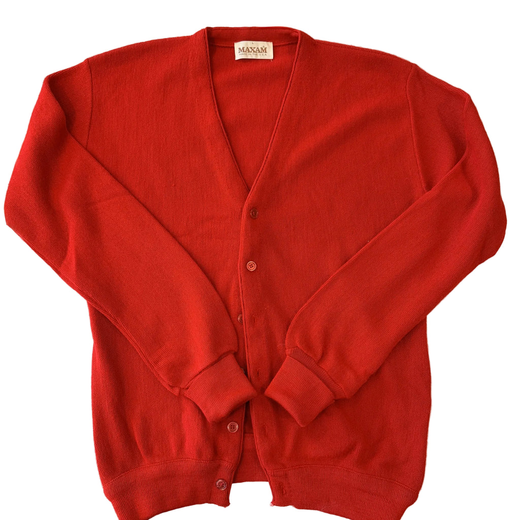 Vintage 60s red cardigan, V neckline.