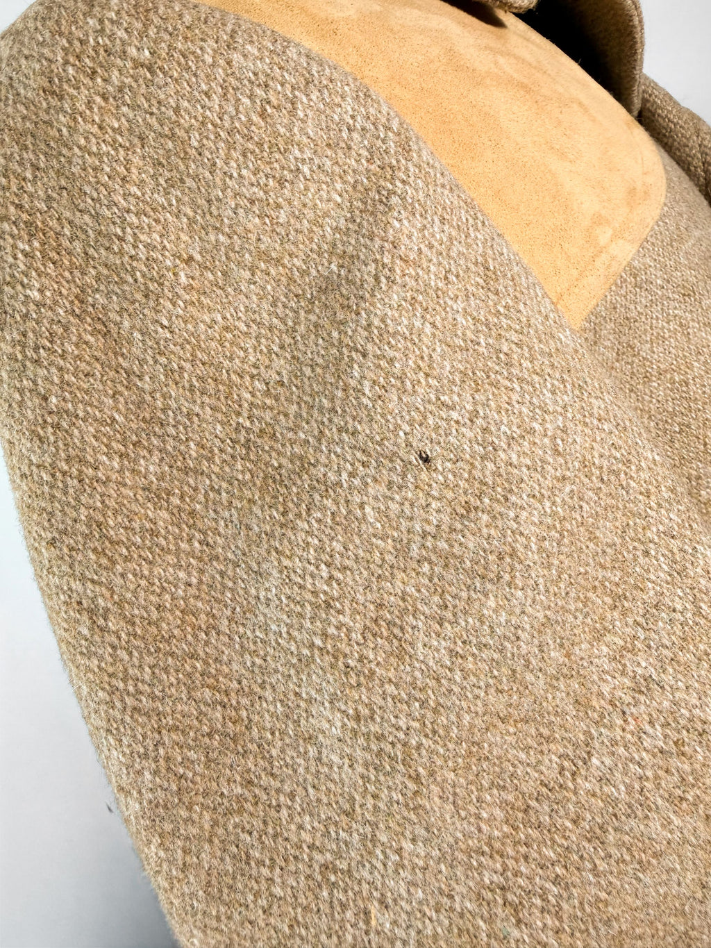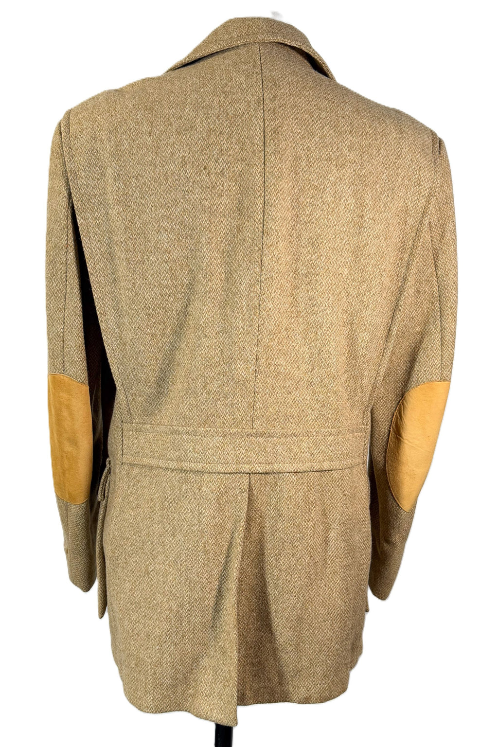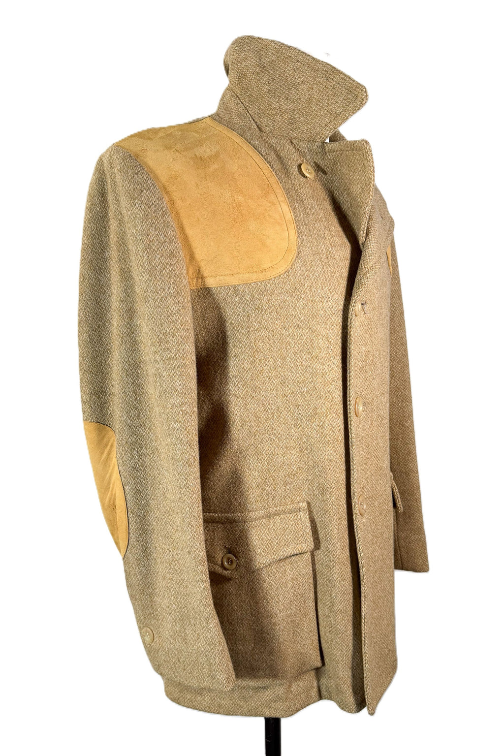 Vintage wool tweed jacket with suede patches on the shoulders and elbows.