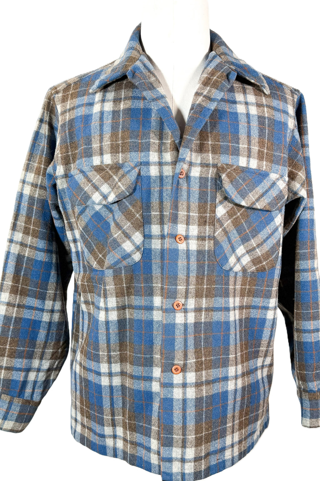 Distressed Pendleton plaid wool board shirt.