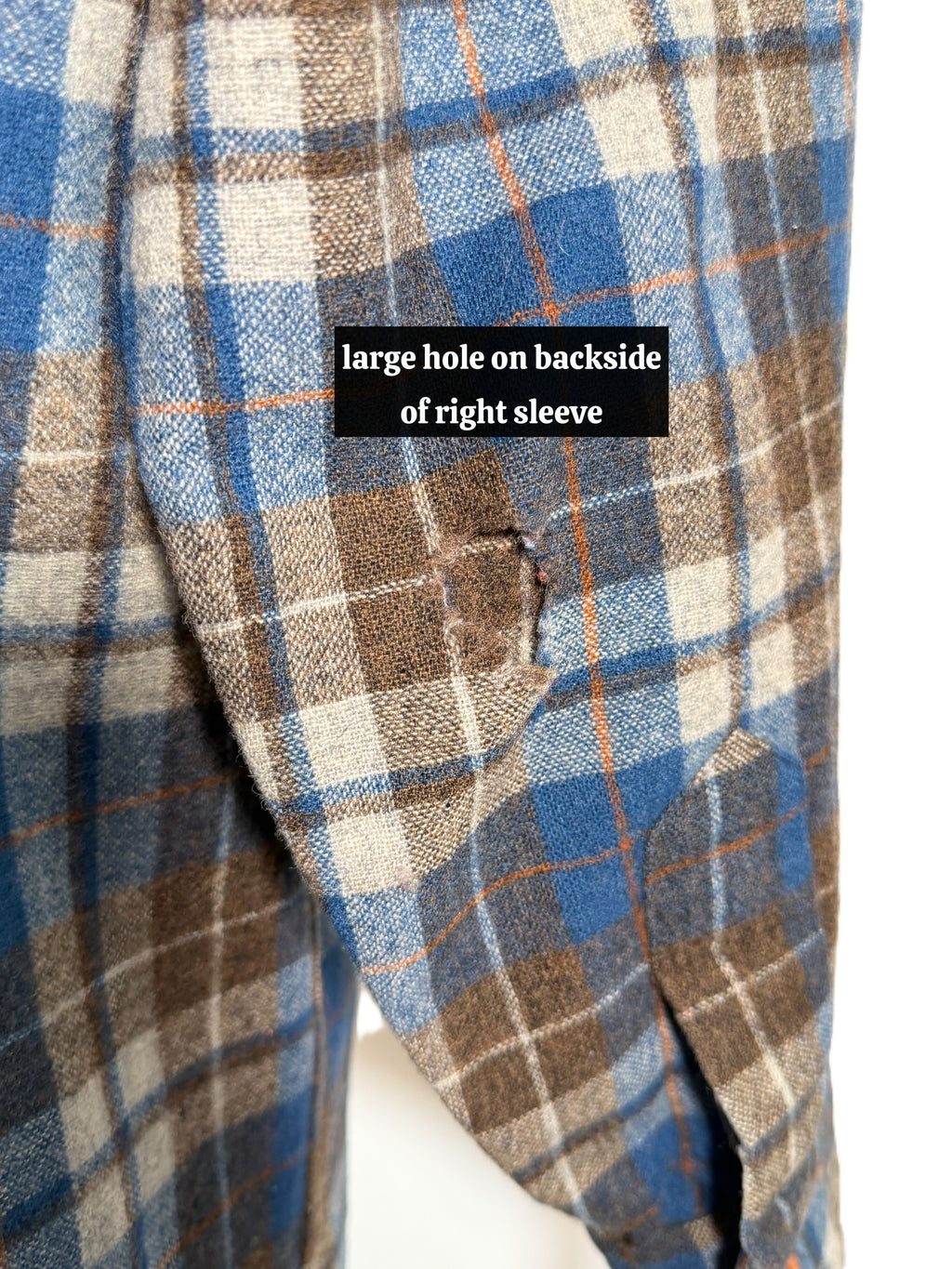 Condition: Distressed. Holes in body, large hole on sleeve (right wearing sleeve). Refer to photos. Sleeve can be professionally patched.