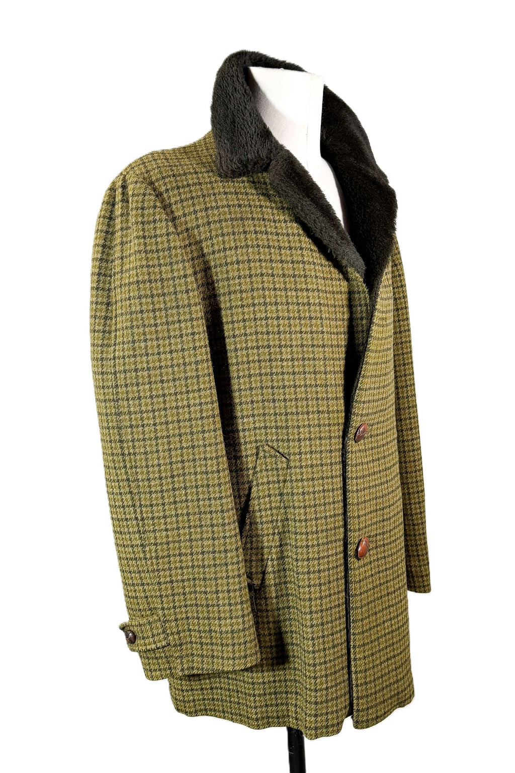 Pendleton Wool. Olive green on green colors, black collar. Houndstooth plaid.