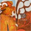 Earthy rusty colors orange, caramel, white. Cotton barkcloth.