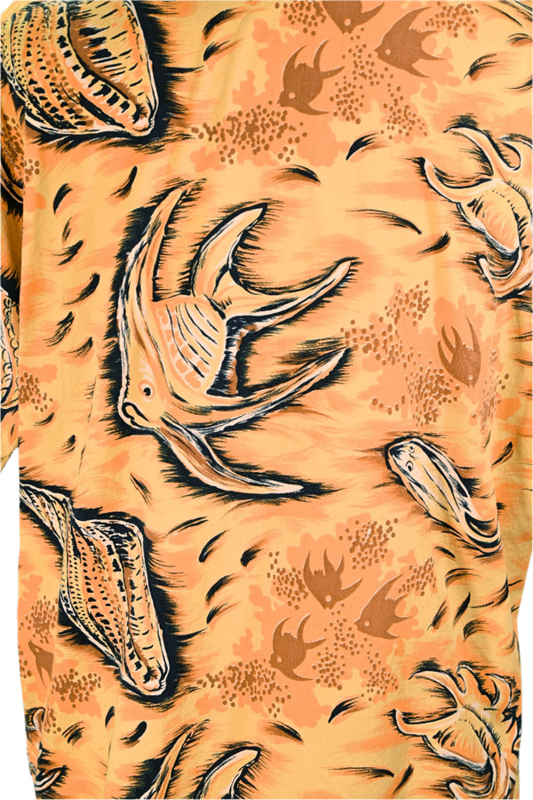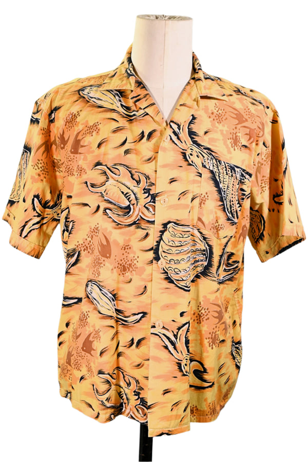 Paradise 50s Vintage Hawaiian Shirt, Fish Seashells Underwater Aloha Shirt, L