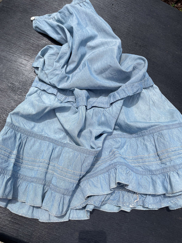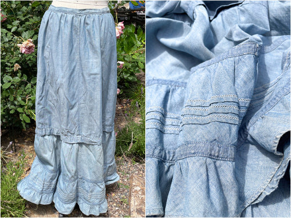 Antique Blue Ruffle/Flounce Maxi Skirt/Victorian Cottagecore Skirt 21" Waist