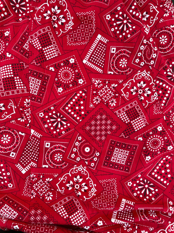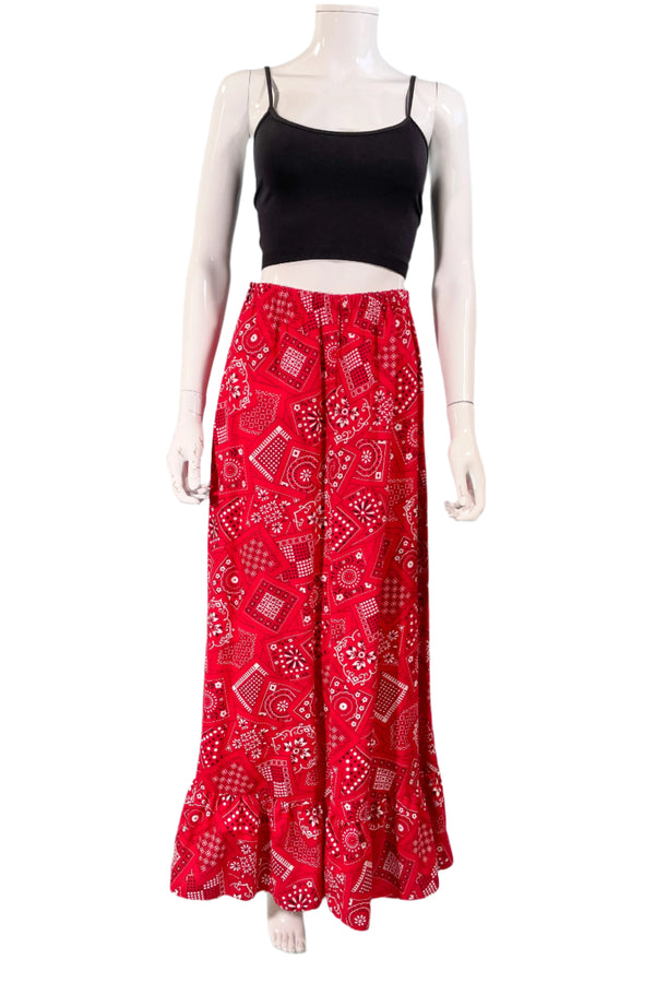 SOLD Vintage 60s Bandana Print Maxi Skirt, Red/Black/White Ruffle Hem Festival Skirt S/M