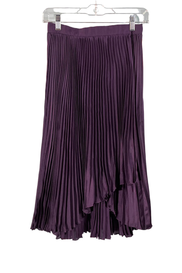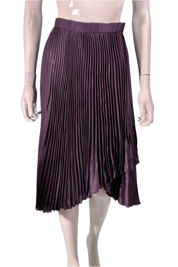 Vintage 70s Pleated Skirt, Eggplant Asymmetrical Hem Midi Skirt 25" W