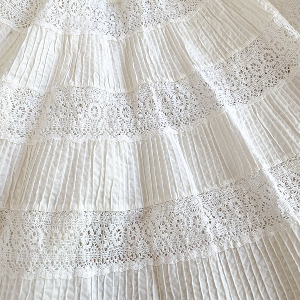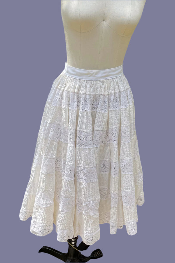 Vintage 60s White Lace Mexican Festival Skirt 22" Waist XXS