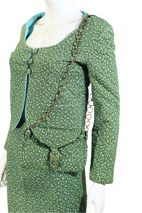 SOLD Vintage 60s Mod Floral Print Suit, + Hat/Bag, 4 Piece Set SZ S/XS