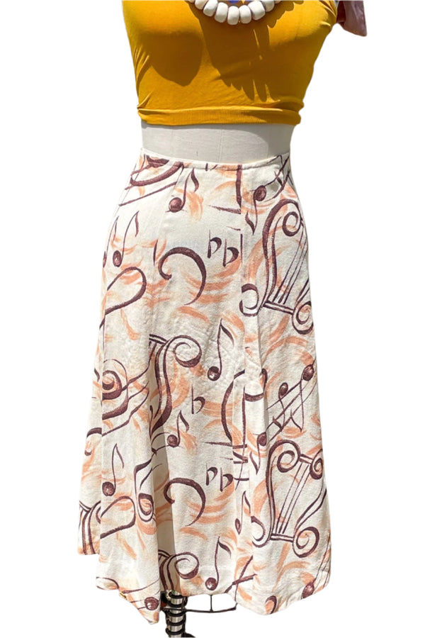 Vintage Music Note Crepe Skirt, Novelty Rockabilly Skirt 25" Waist