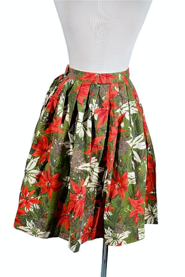 Vintage 50s Poinsettia Floral Novelty Print Skirt M