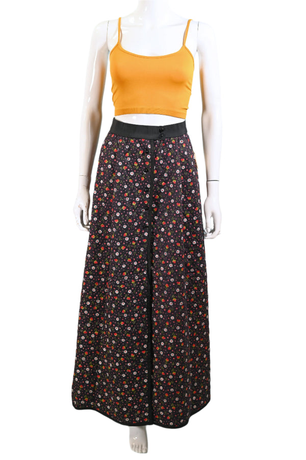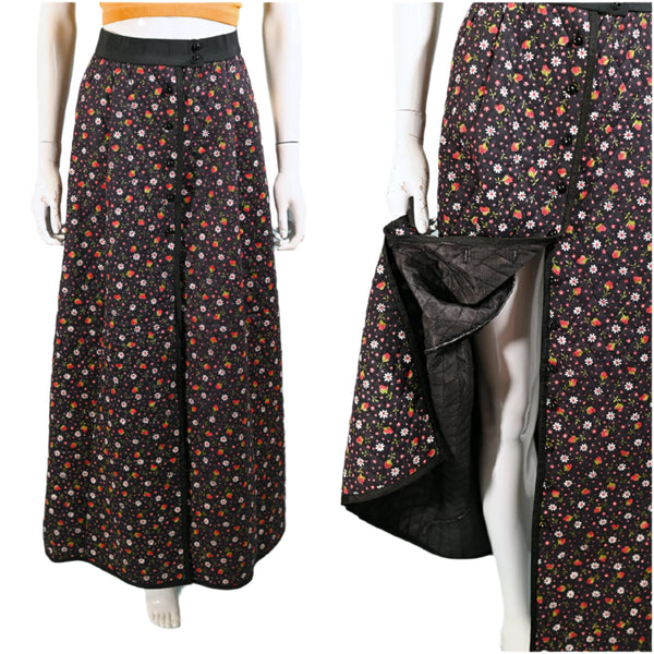 Vintage 60s/70s Quilted Floral Print Maxi Skirt, Button Front Original Tags S
