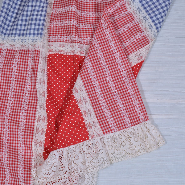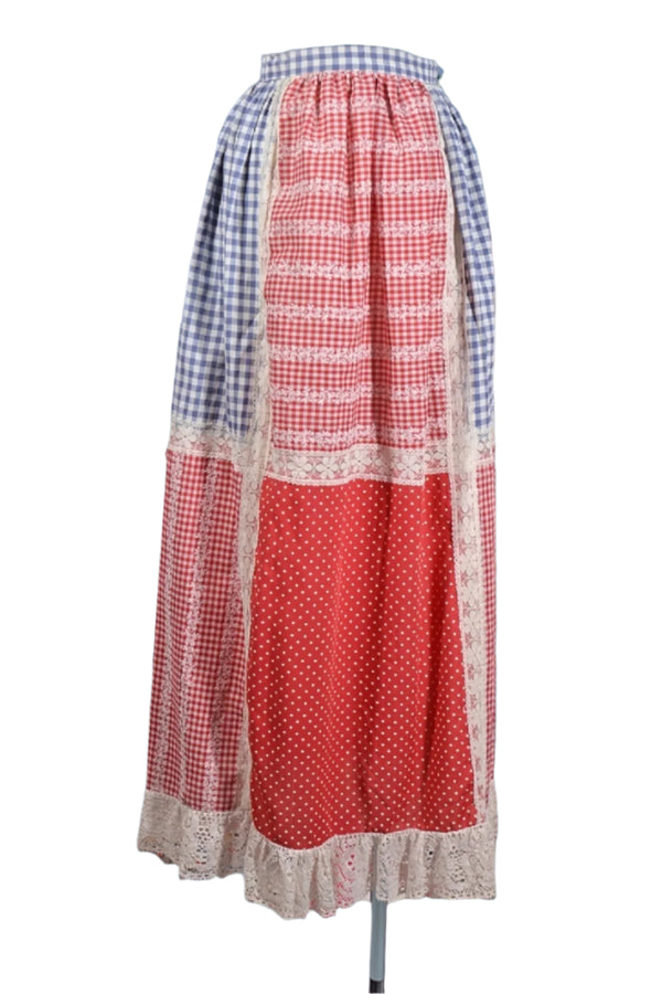Vintage 60s Gingham Patchwork Cottagecore Country Skirt XS