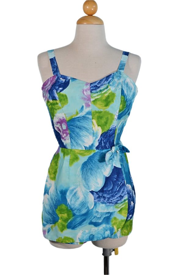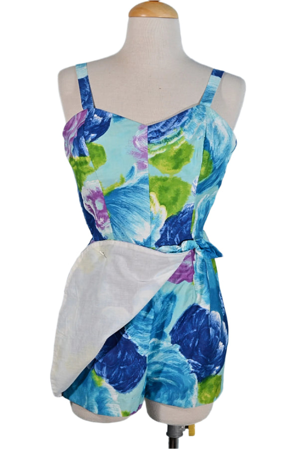 Vintage 50s Jay Hart Blue Floral One Piece Swimwear/Romper 27" Waist
