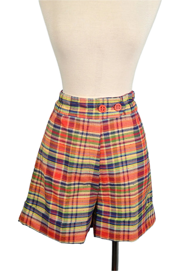 Vintage 70s Madras Plaid Shorts, 24" Waist