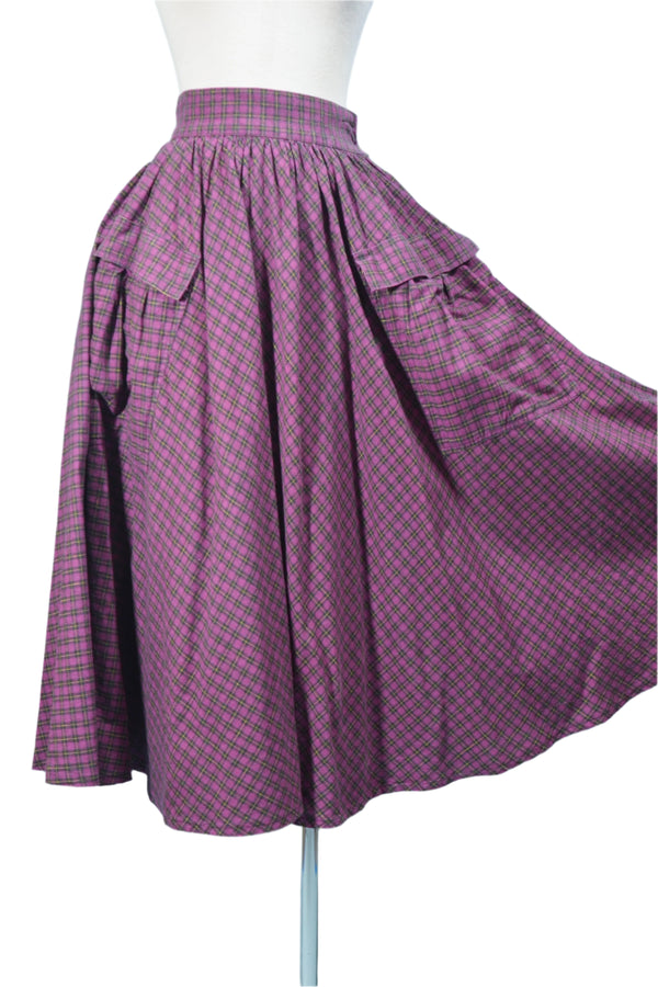 80s Purple Plaid Full Skirt, Huge Pockets Cottagecore Prairie Skirt, 24" Waist