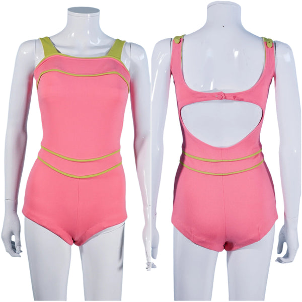 Vintage 60s Pink One Piece Swimsuit, Elizabeth Stewart Fit XS/S