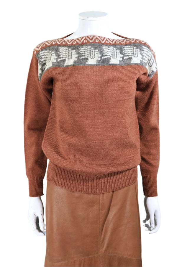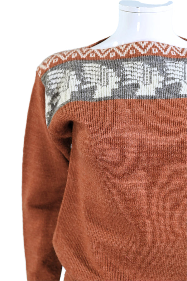 Vintage 70s Ethnic/Tribal Novelty Print Pullover Sweater, Acrylic S/M