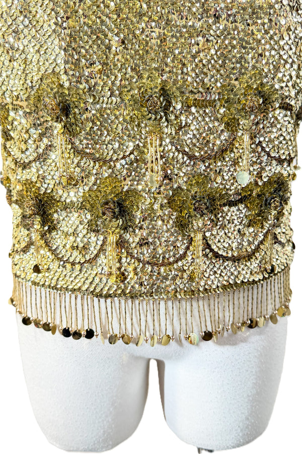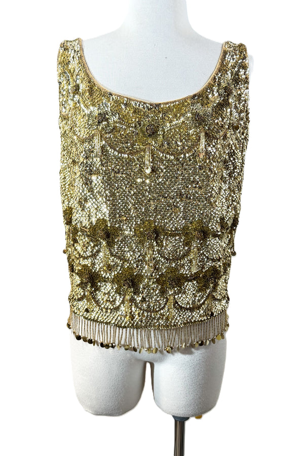 Vintage 60s Sparkling Gold Sequin Beaded Top: Rat Pack Era M