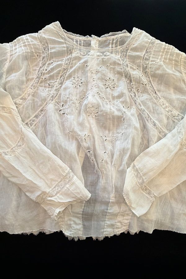 Antique Edwardian/Victorian White Cotton & Lace Blouse M