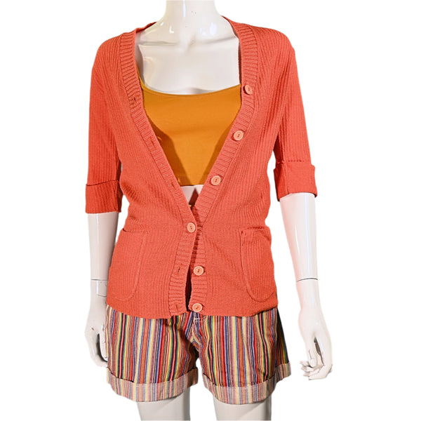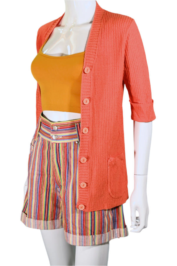 Vintage 60s Mod Orange V Neck/Short Sleeve/Long Top S