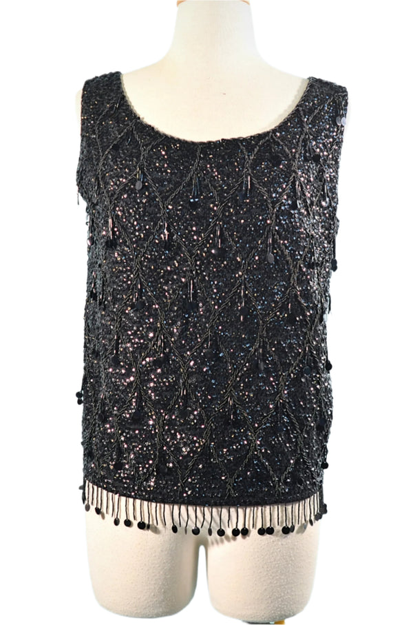 Vintage Black Sequin/Beaded Top, 60s GO GO Sparkle Top