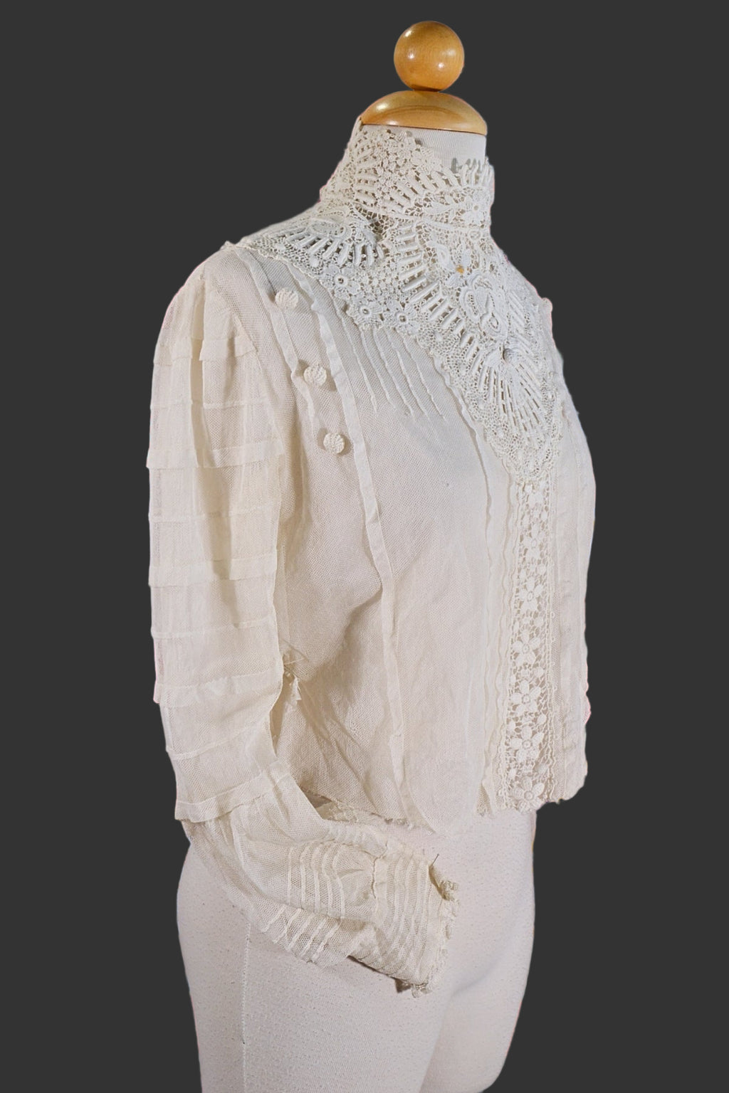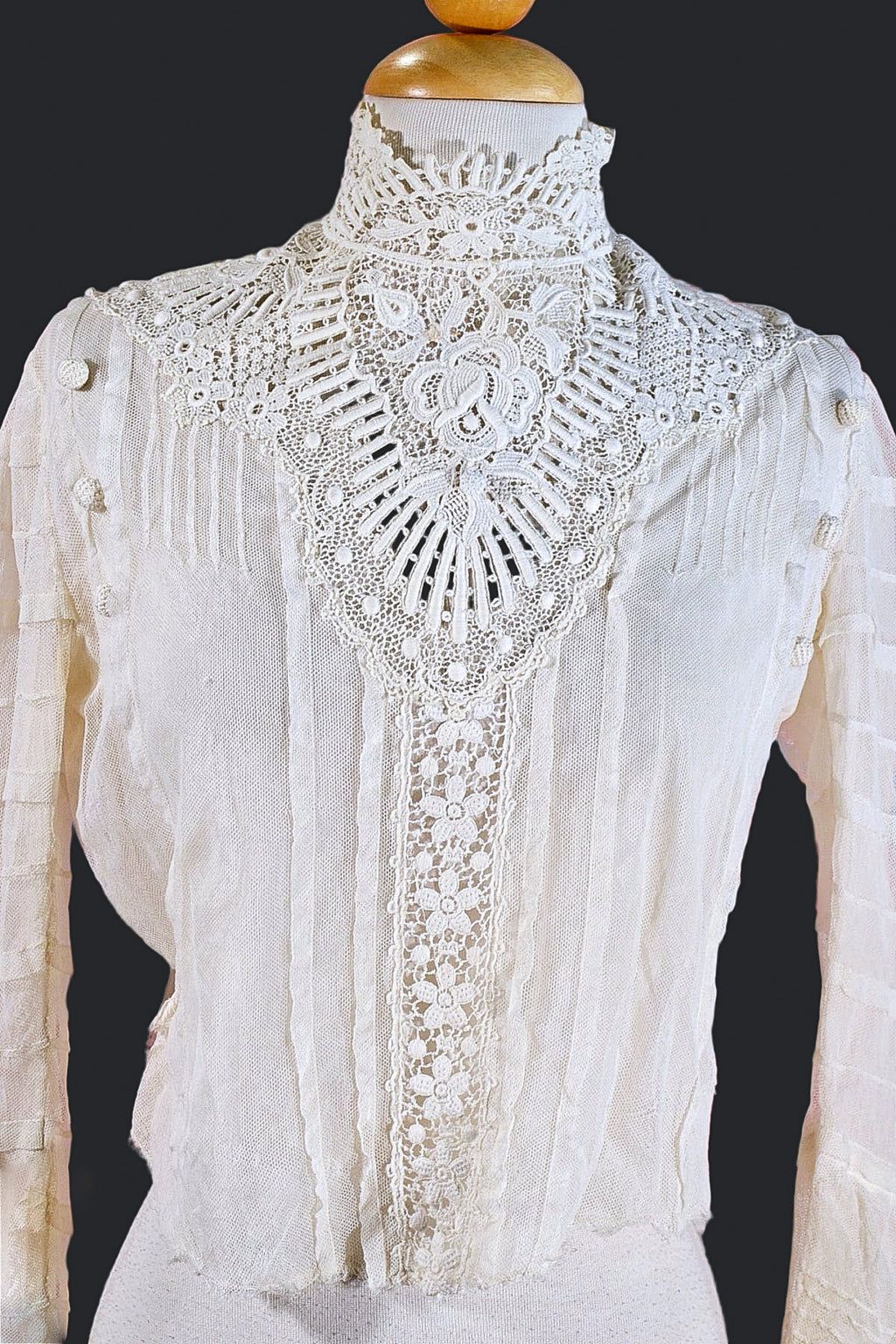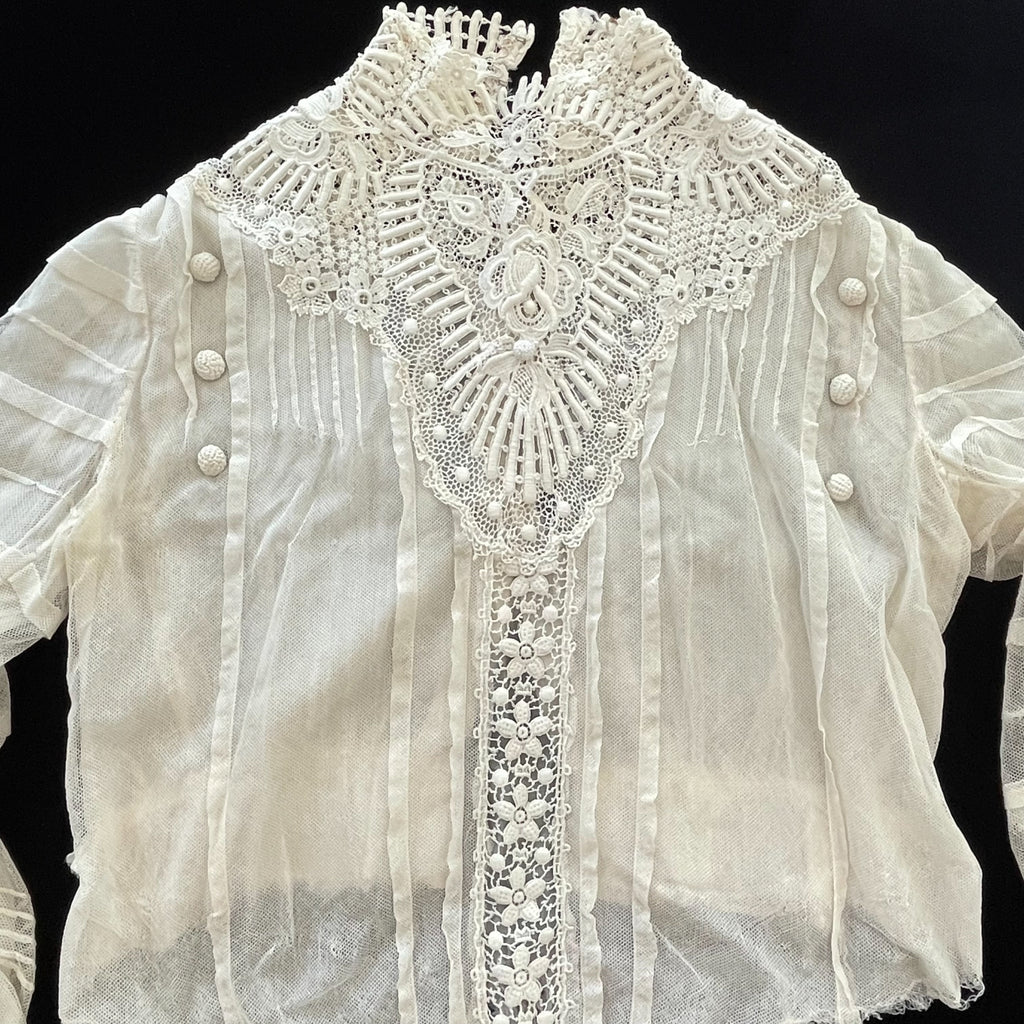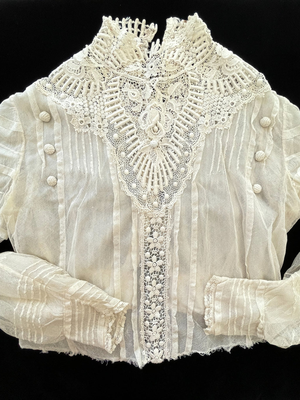 Beautiful antique Edwardian blouse made from lightweight sheer netting.