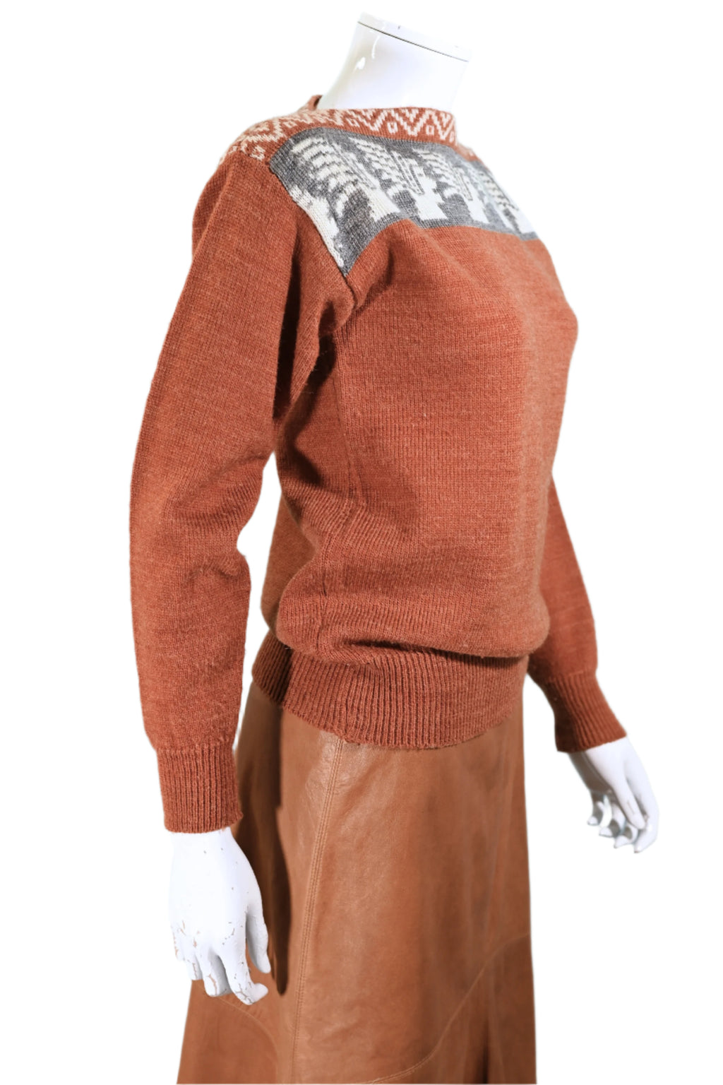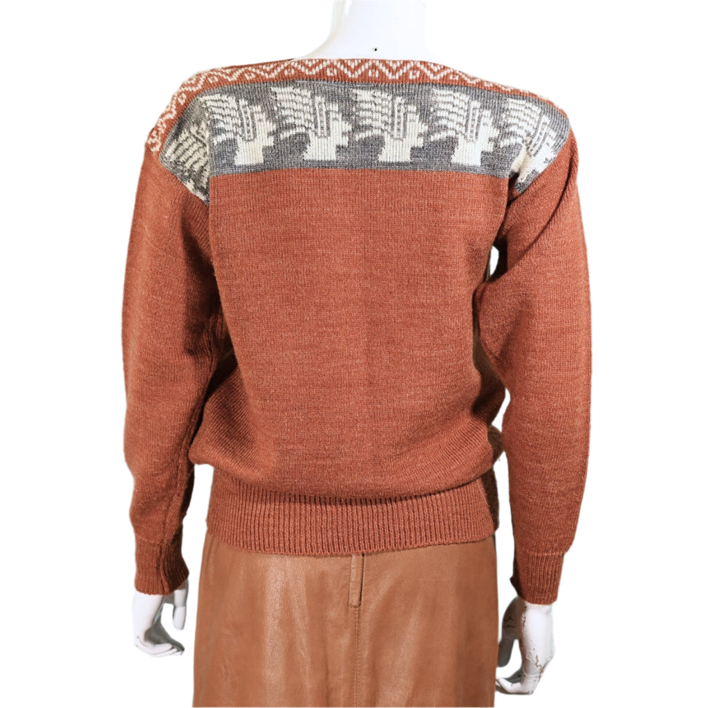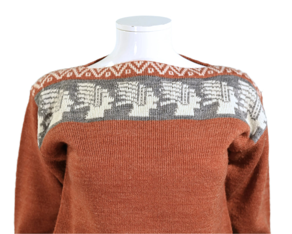 Vintage 70s pullover sweater with tribal/ethnic pattern on the neckline.