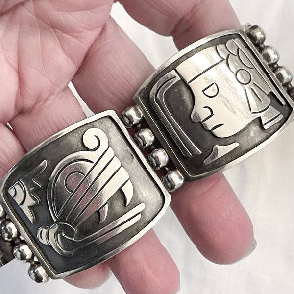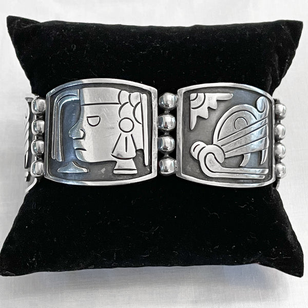 SOLD Margot De Taxco Sterling Mayan Bracelet #5280 Pre-Columbia Design 92.4 Grams