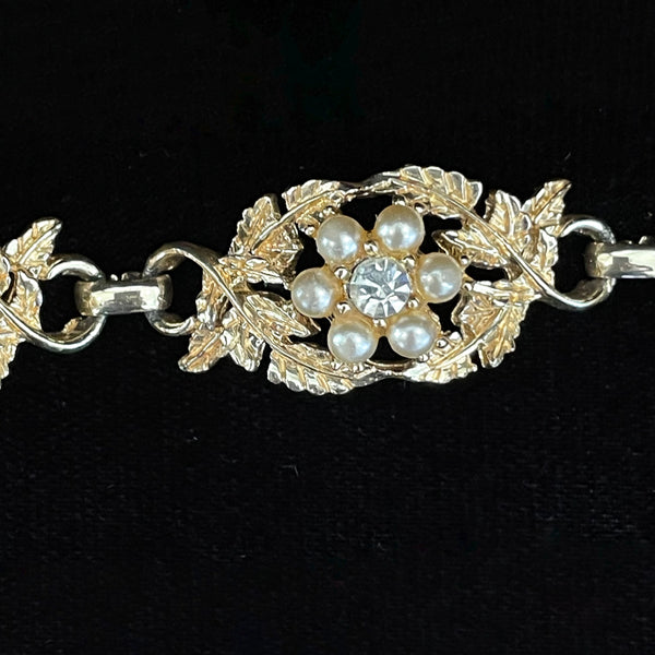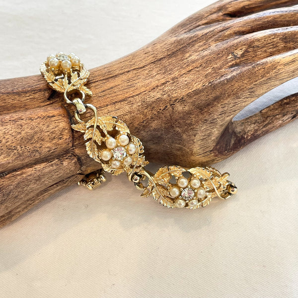 SOLD Vintage Coro Gold Tone Faux Pear Rhinestone Bracelet, Fancy Style 7 1/2" L