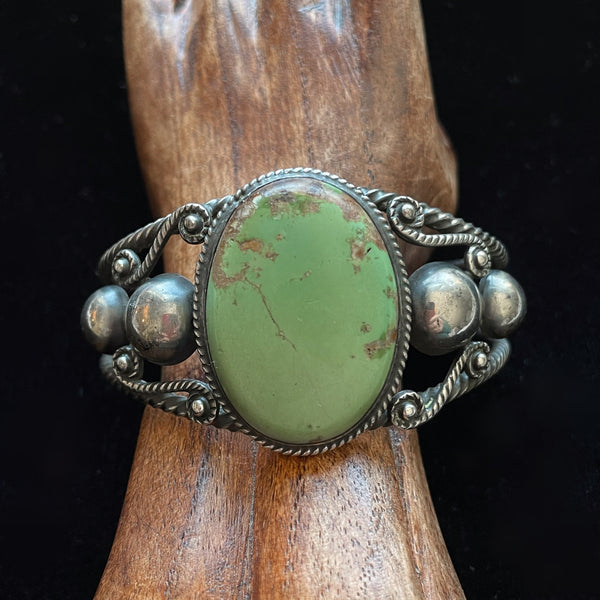 SOLD Vintage 40s Sterling Silver Green Turquoise Cuff Bracelet, Southwestern