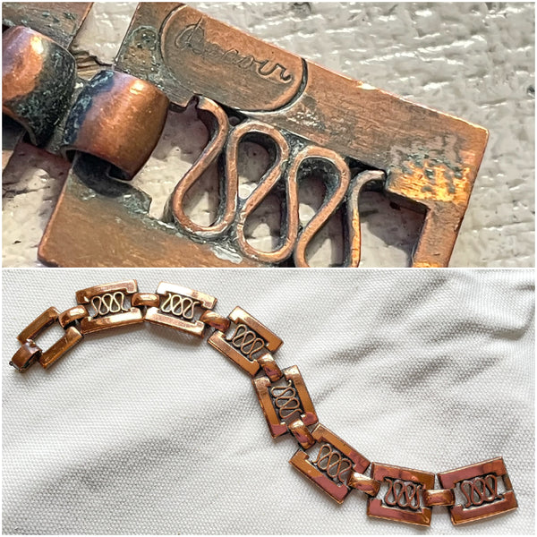 Vintage Casa Maya Copper Mixed Metal Bracelet, Signed Mexico