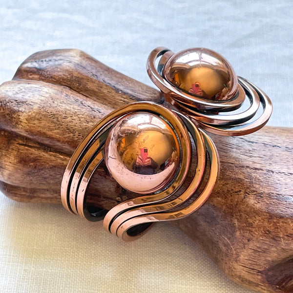 Vintage Brutalist Copper Repousse Bracelet, Artisan Hand Crafted Made in Mexico