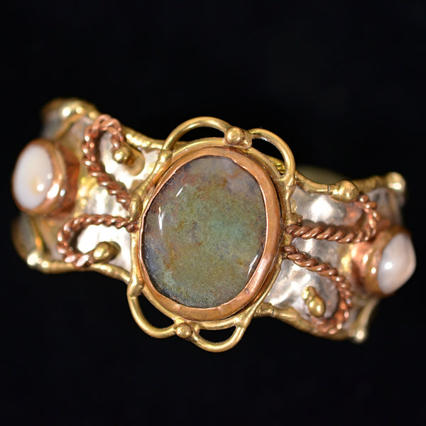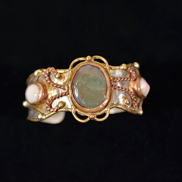 Vintage Brutalist Mixed Metals Modernist Abstract Cuff Bracelet