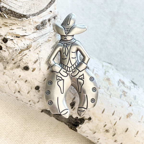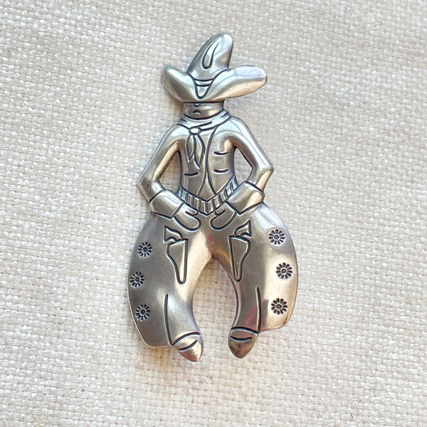 SOLD Vintage Bell Trading Post Sterling Silver Cowboy Brooch, Fred Harvey Era Pin 4.9 G