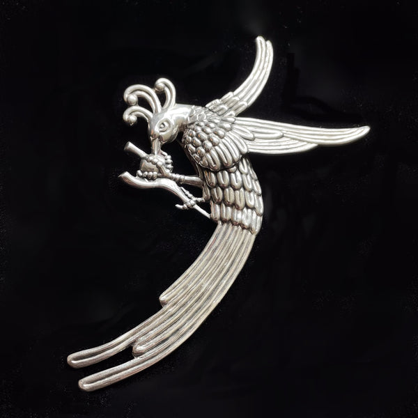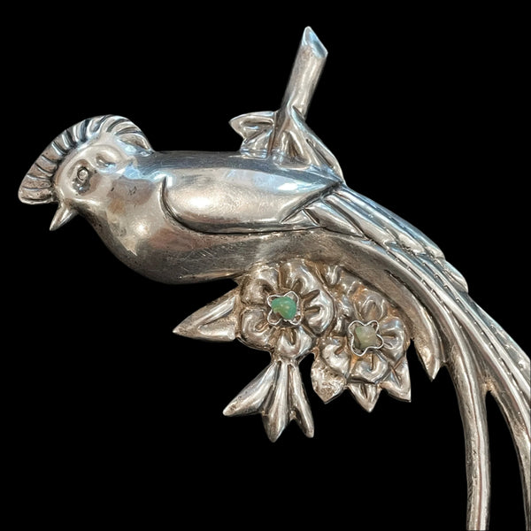 Large Vintage Sterling Silver Quetzal Bird Brooch, Made In Mexico 27.7 Grams