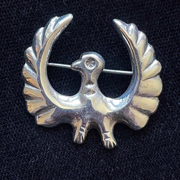 Vintage Sterling Silver Southwestern Bird Brooch, Wings Up Flying Bird Pin